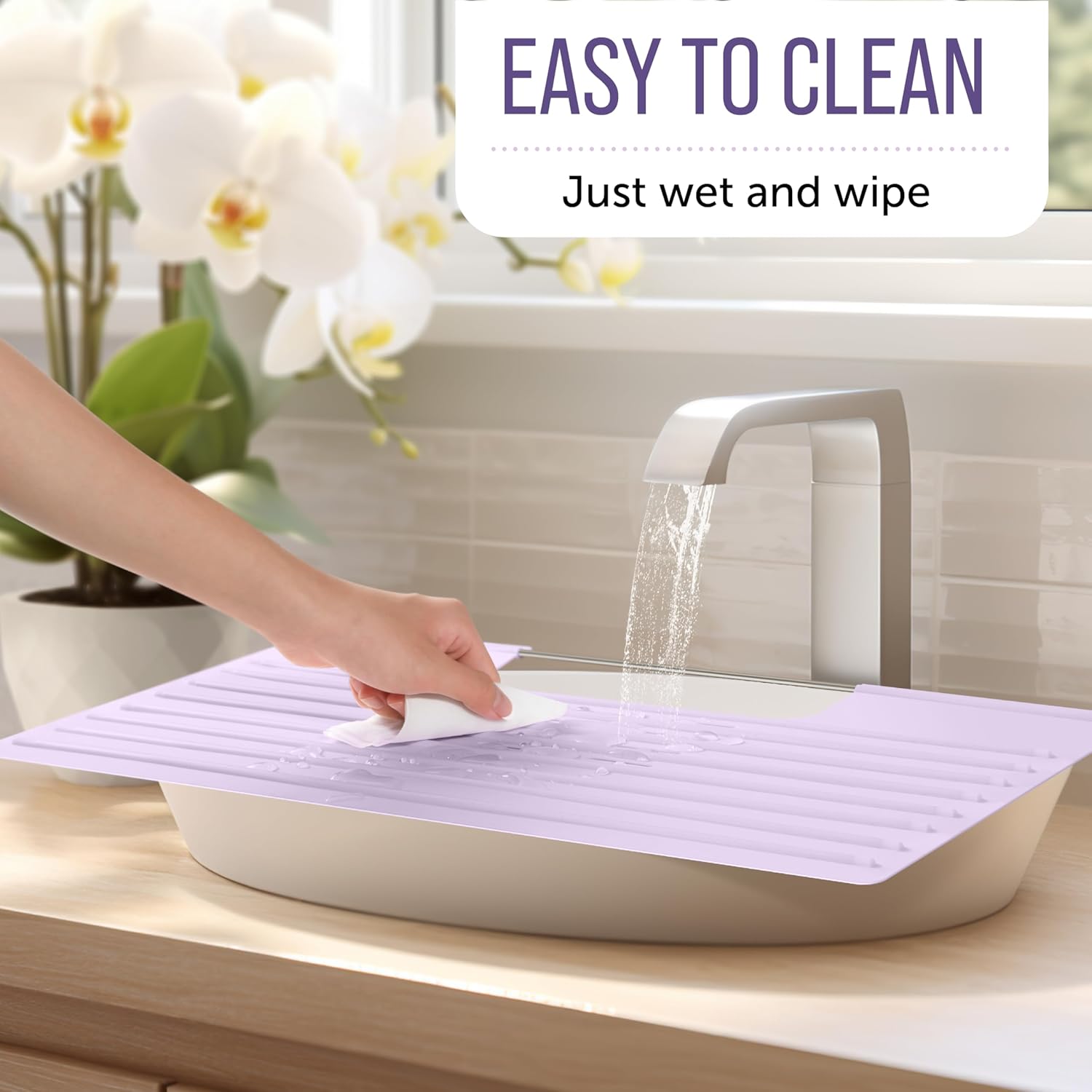Maplefield Lavender Foldable Sink Cover - Small 22 x 2 x 2 In Lavender Silicone - Heat Resistant Makeup Mat & Sink Cover for Counter Space - Space Saving Rectangle Countertop Topper