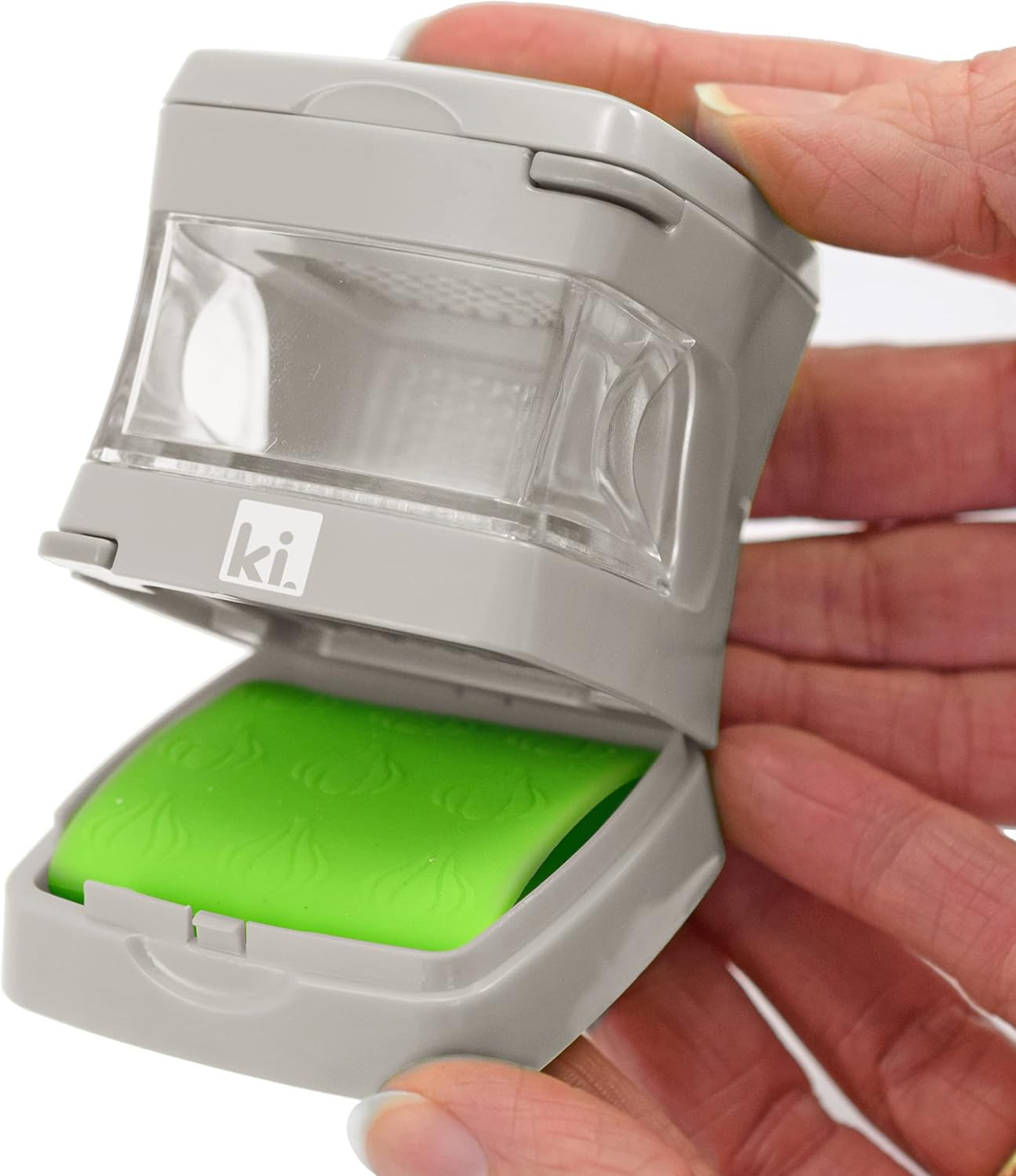 - Leaves no odour on hands; Use the silicone peeler to peel garlic, then simply add garlic in between the top and selected blade, then push down; Clear container catches crushed garlic and allows for easy transfer directly to any dish or recipe