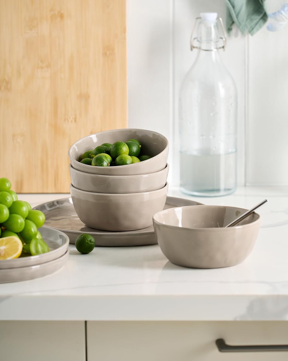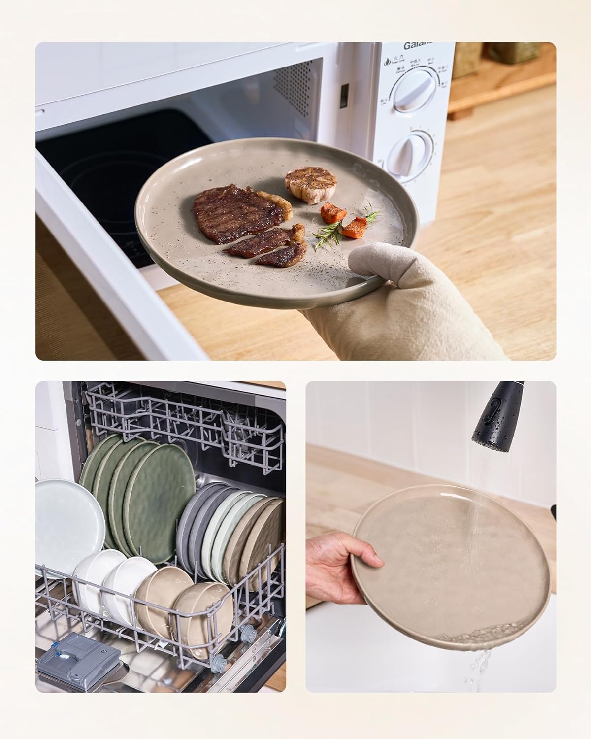 - 【Scratch Resistant】Dinnerware is fired at 2340℉ for 13.5 hours to form a strong scratch resistant surface. No need to worry about scratches from your forks or knives.
