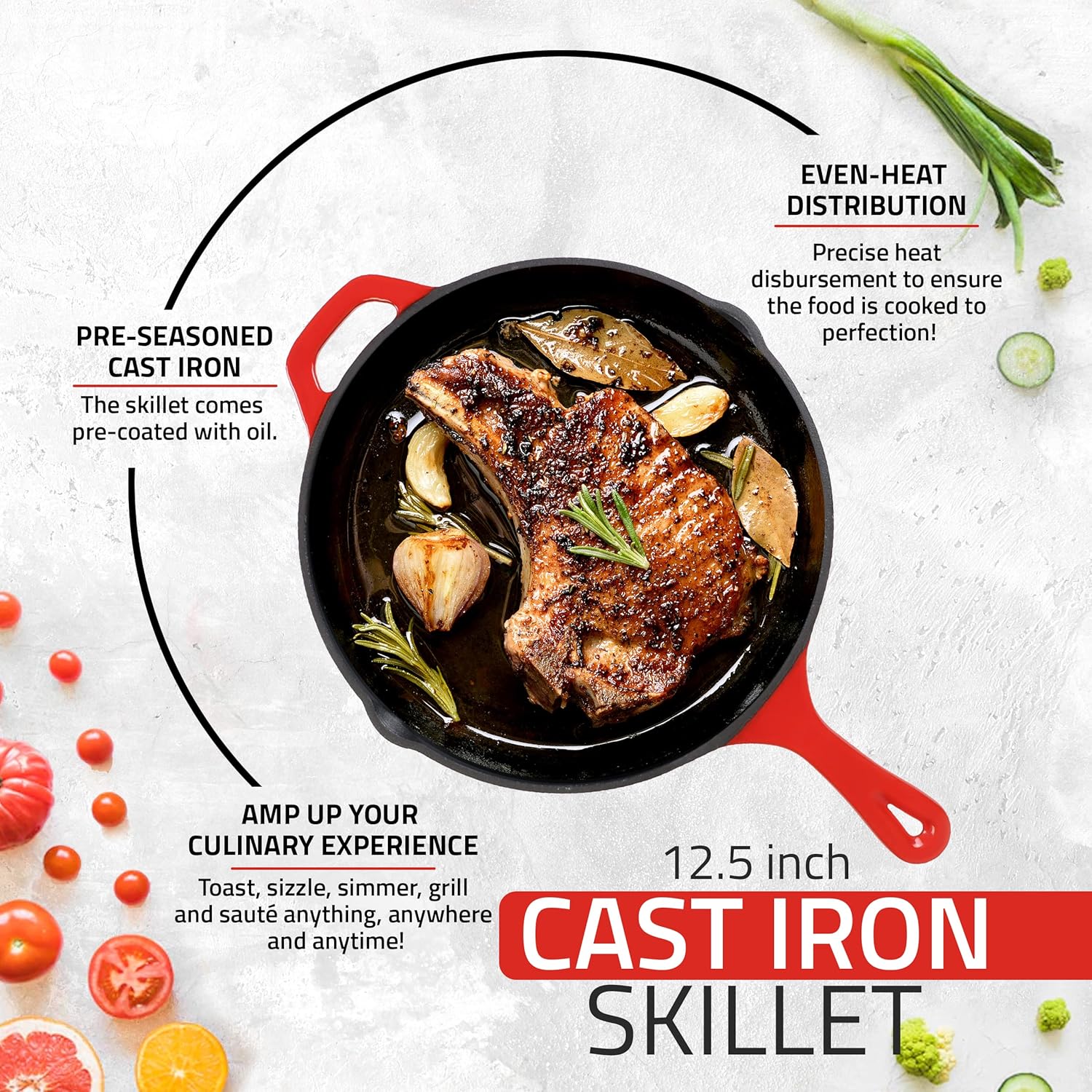 - Superior Heat Retention: The Cast Iron Skillet distributes heat evenly across the surface for perfect cooking results. Ideal for searing, sautéing, frying, baking, and more.