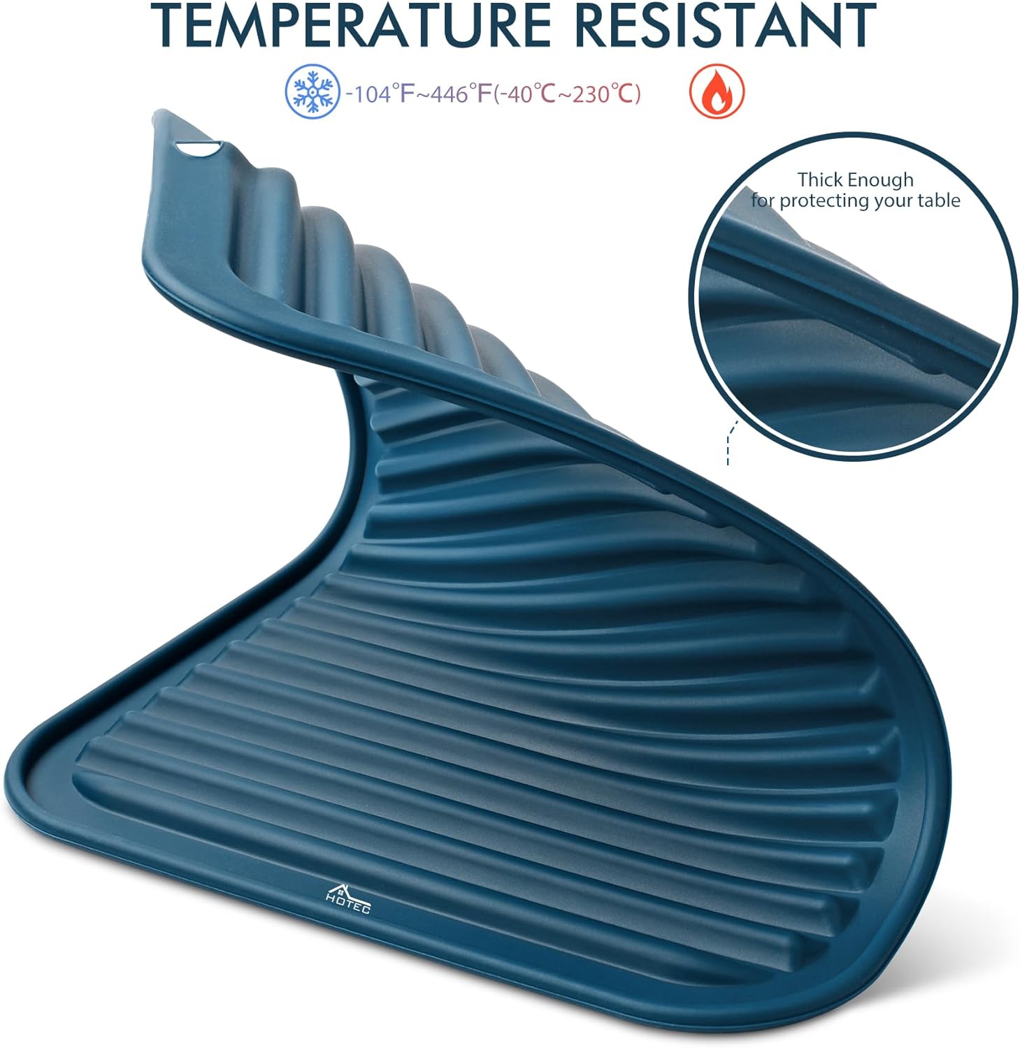 HOTEC BPA Free Silicone Trivets for Hot pots and Pans, 446℉ Heat Resistant for Kitchen Counter Dish Drying Mat, Set of 2 Classic Blue