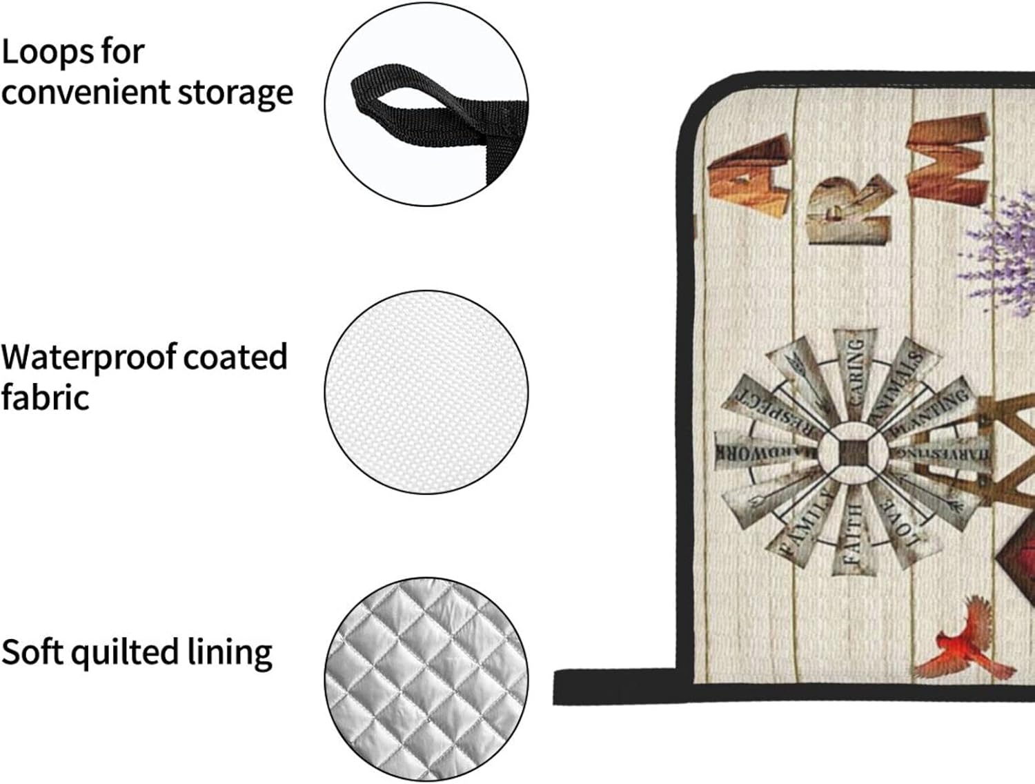 Oven Mitts and Pot Holders Sets of 4,Farmhouse Windmill and Barn House Lavender Cardinal Bird Country Style,Oven Mitts Heat Resistant Oven Gloves Set Potholders for Kitchen Baking Grilling