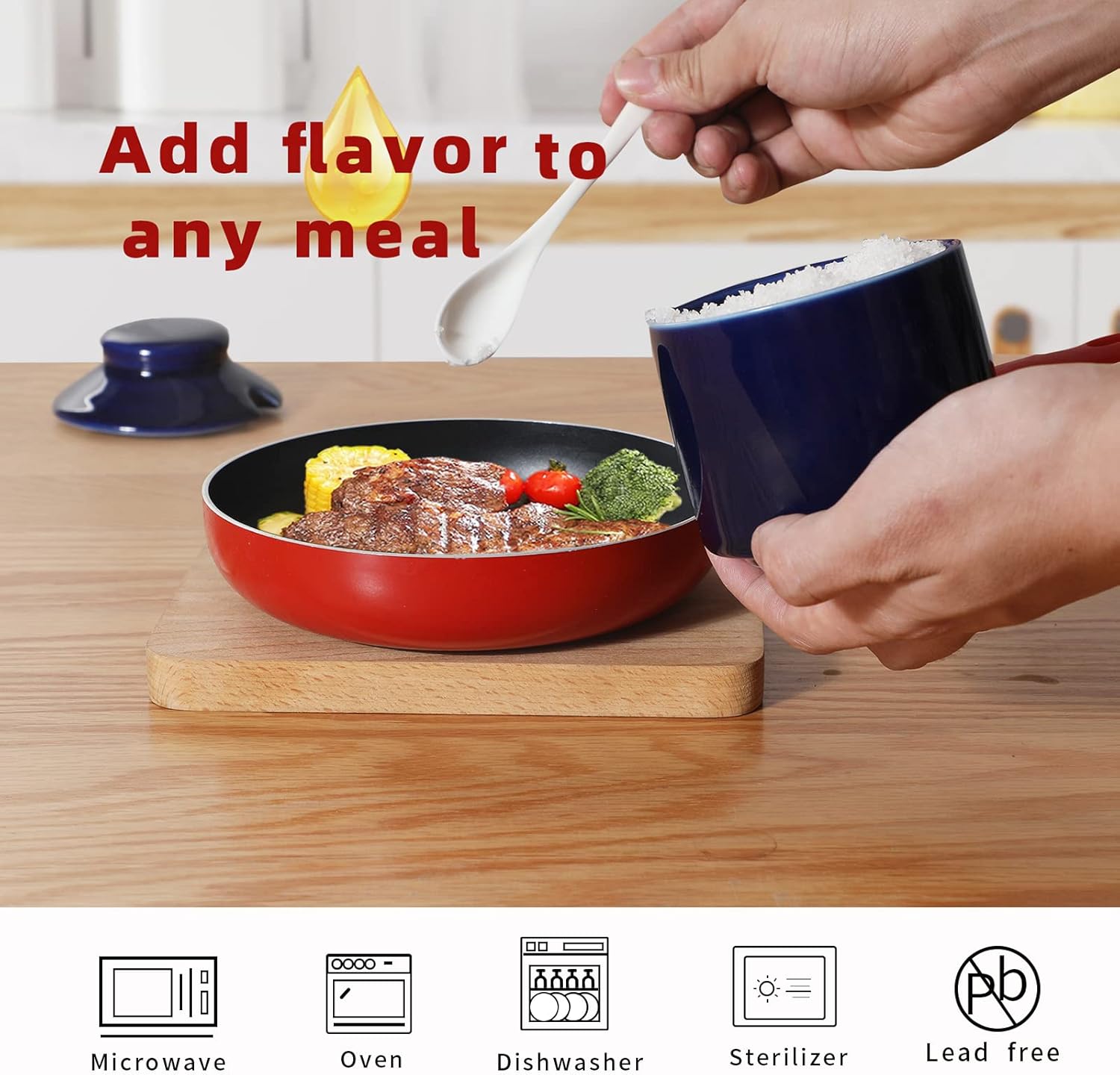 ONTUBE Ceramic Sugar Bowl with Lid and Spoon Set of 2,Porcelain Seasoning Box Salt Bowl with Tray,8oz (Navy)