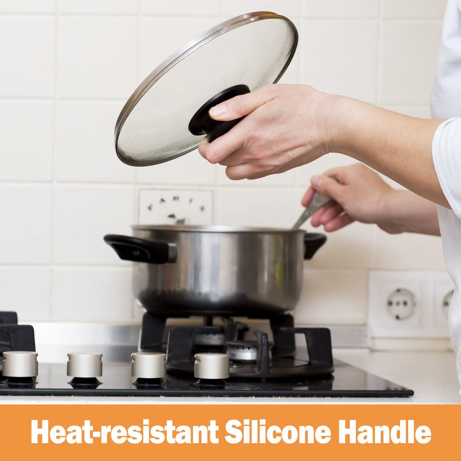 - 【Heat-resistant Silicone Handle】: The pot lid has a heat-resistant silicone knob that provides a safe and stable grip to grab. And as the knob is cool to touch when cooking, you can easily move around the lid without waiting for a long time.