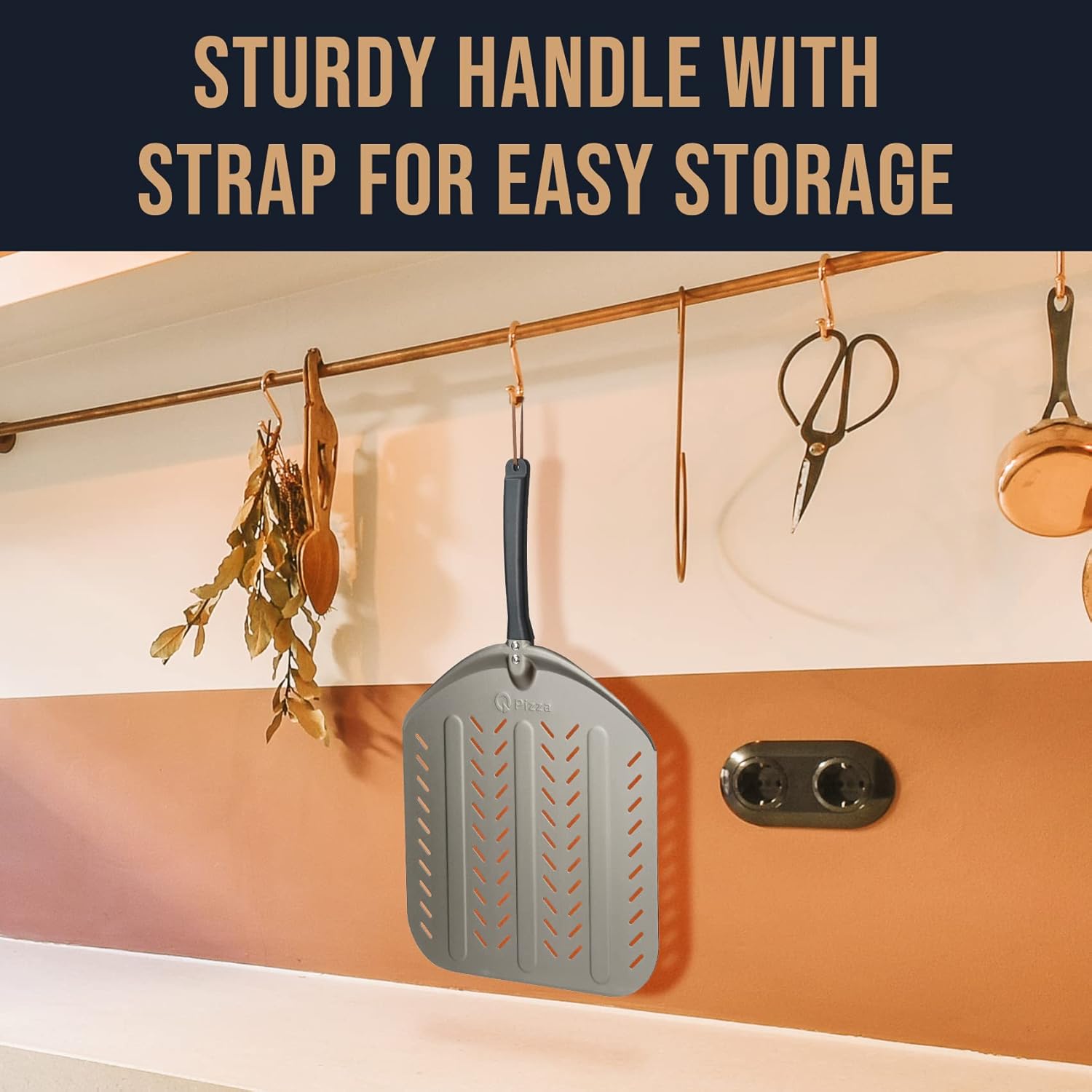 - 【PERFECT GIFT】The large pizza peel has a sturdy handle with hanging strap for easy storage. It's a best gift for housewarming, Birthday, Christmas or New Year for pizza lovers.