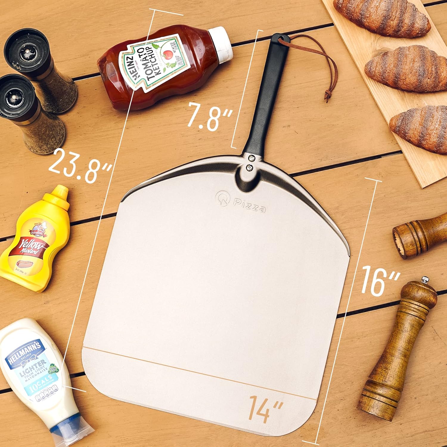 Q Pizza Aluminium Pizza Peel 14 inch, Extra Large Metal Pizza Turning Paddle, Non-stick Pizza Spatula for Grill Oven Baking Bread Pastry Dough Pie Cake, PT205
