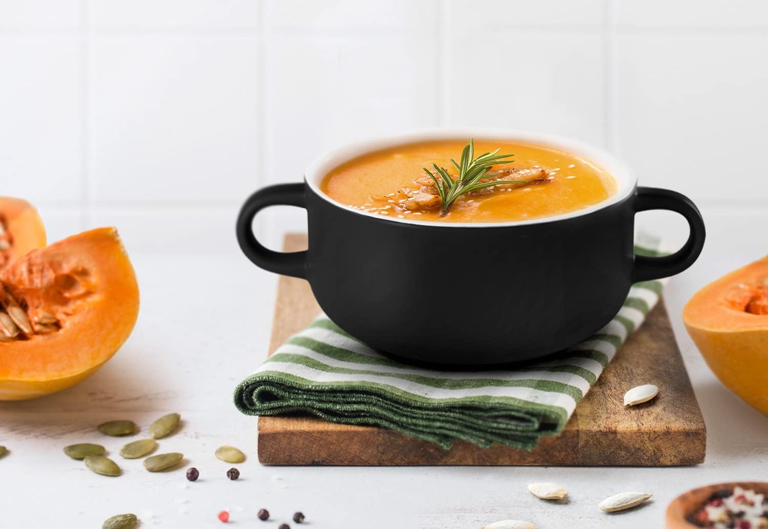 Kook Soup Crocks, Ceramic Bowls, Broil, Oven, Microwave and Dishwasher Safe, with Handles, For Casserole, Pasta, Cereal, 18 oz, Set of 4 (Black)