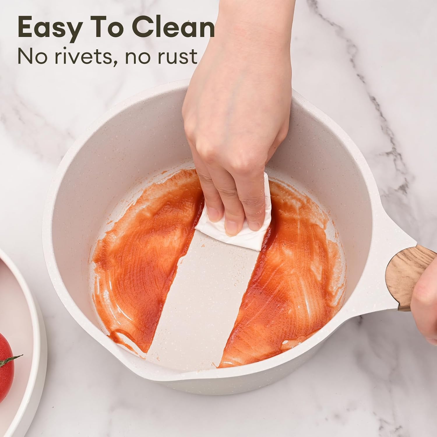 - [Super Easy to Clean] - Our milk pan is non-stick and has no rivets inside. It effectively prevents food from sticking and is very easy to clean. It is easy to wash with just a sponge and soapy water