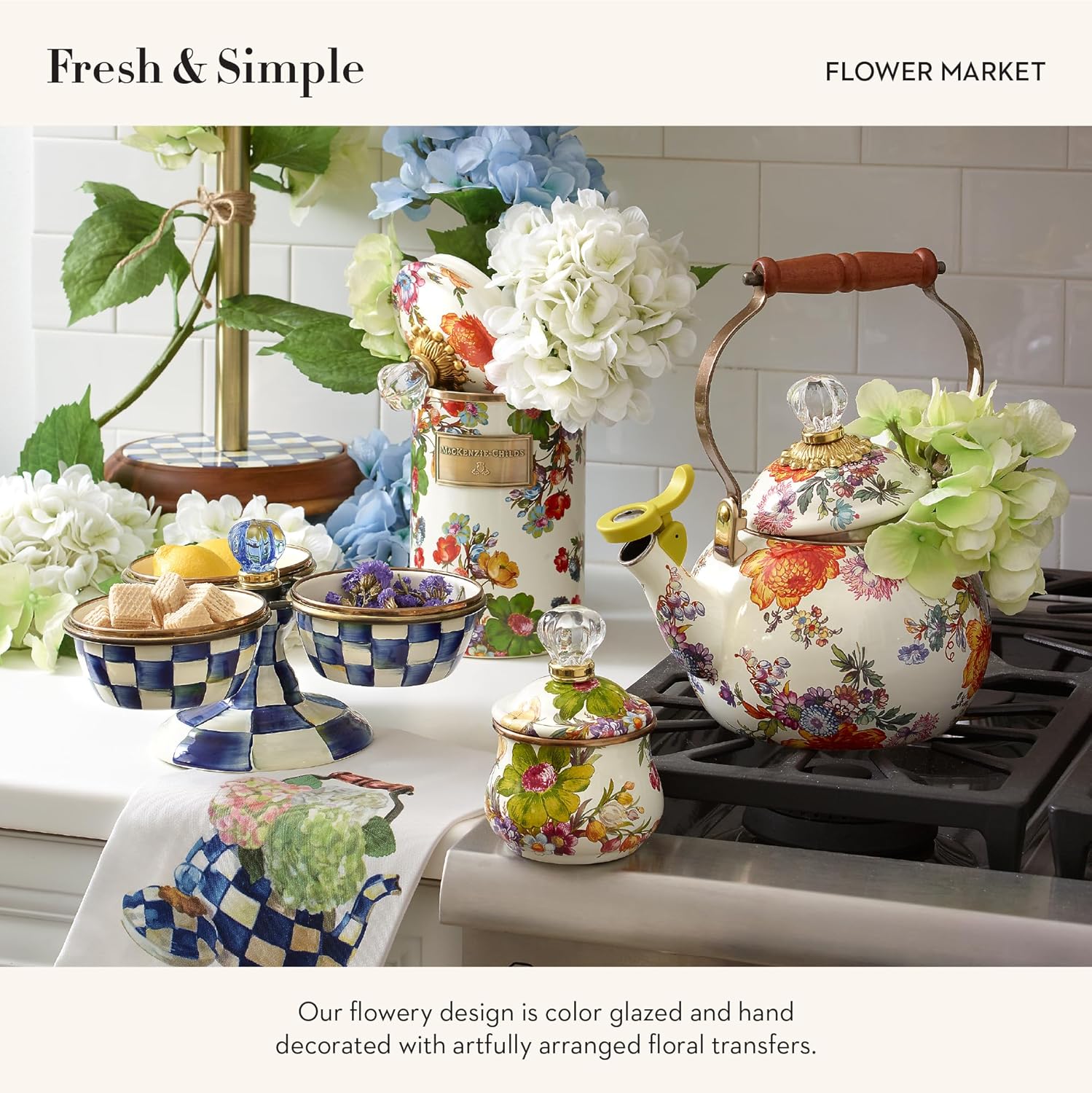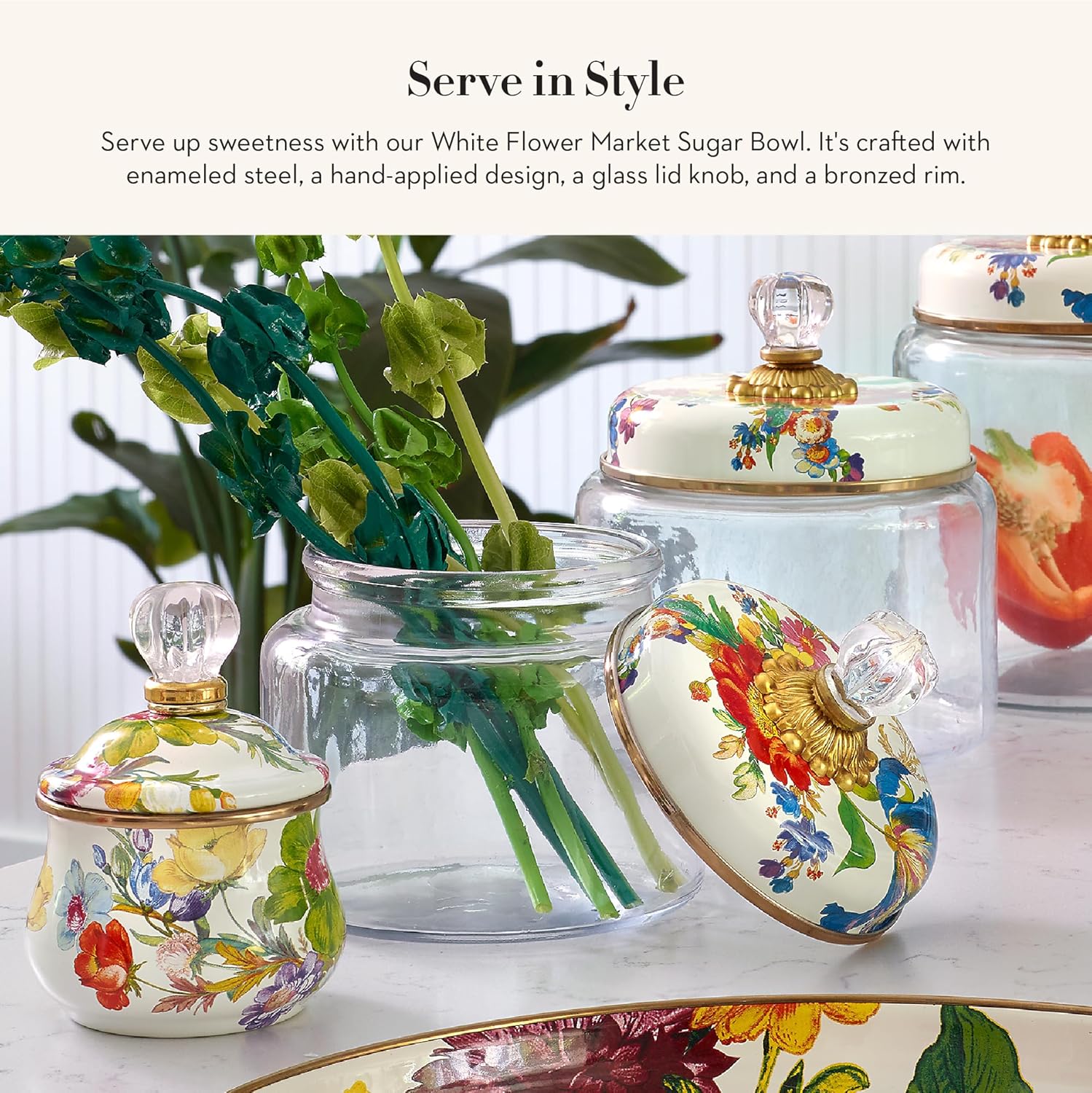 MACKENZIE-CHILDS Enamel Lidded Sugar Bowl, Small Serving Bowl with Lid, 10-Ounce Capacity, White Flower Market