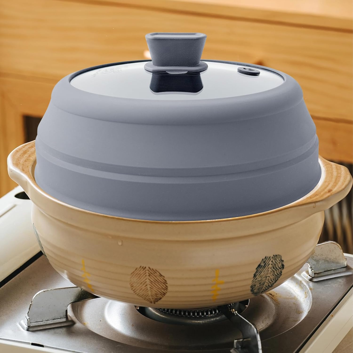 Microwave Splatter Cover Glass Microwave Cover for Food Collapsible Splatter Guard Lid with Silicone Handle for Pot Plate Bowl 9 Inch Grey