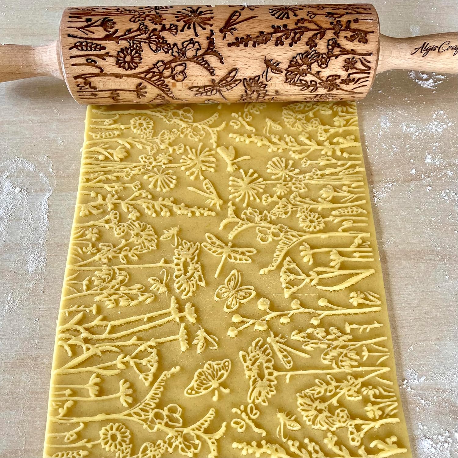 MEADOW Embossing Rolling Pin. Laser Engraved Rolling Pin for Pottery and Cookies by Algis Crafts