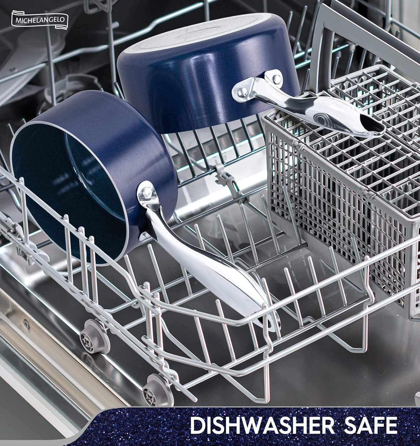 MICHELANGELO Sauce Pan Sets, Ceramic Saucepans with Lids, 1Qt & 2Qt & 3Qt Sauce Pans with Lid, Nonstick Saucepan Set, Small Pot with Stainless Steel Handle, Oven Safe, Blue
