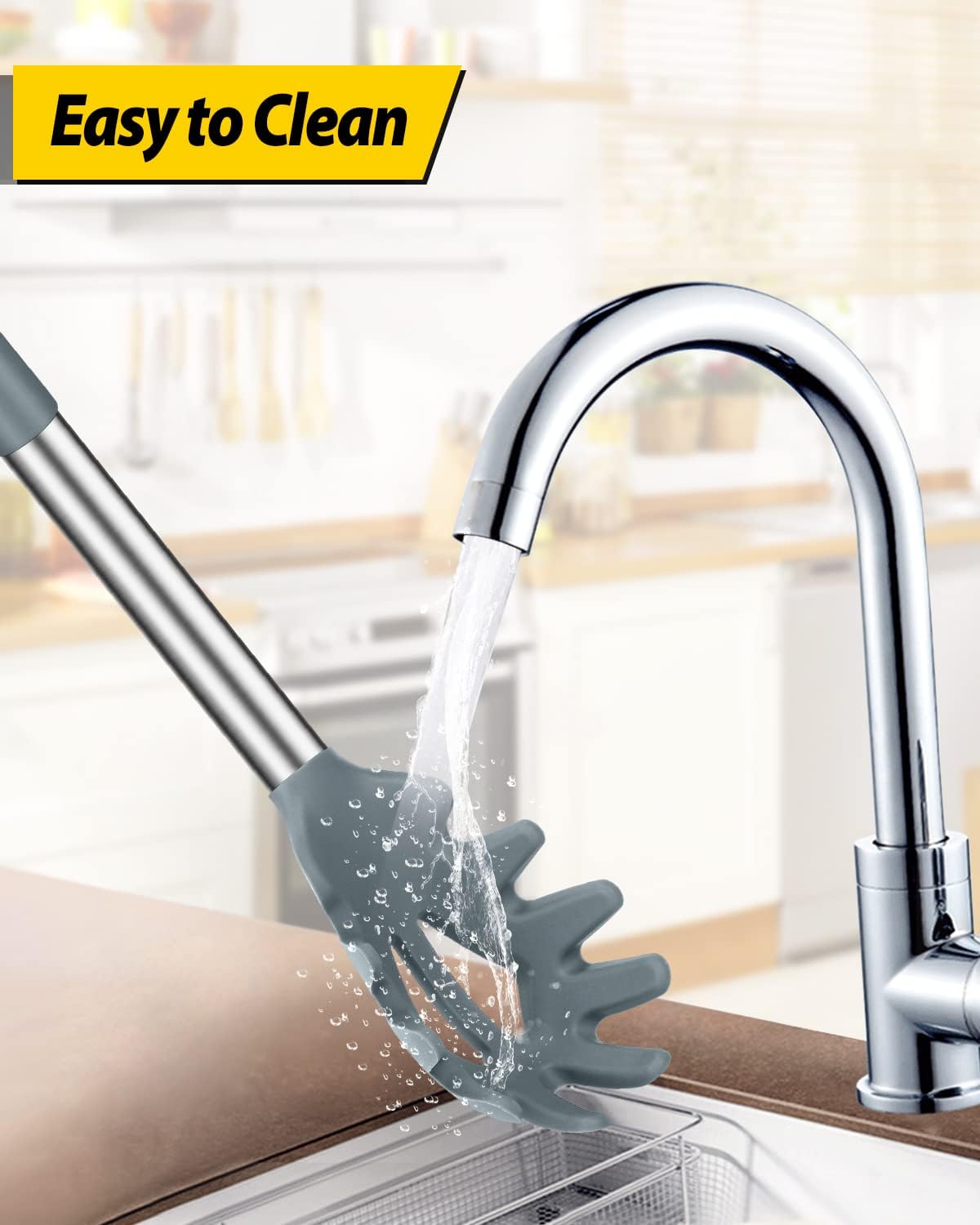 - Thoughtful Design : The good-quality 18/8 stainless steel keeps you away from the trouble of kitchen utensils rusting or breaking; This anti-scald silicone handle is not easy to conduct heat and is more comfortable to hold than traditional utensils