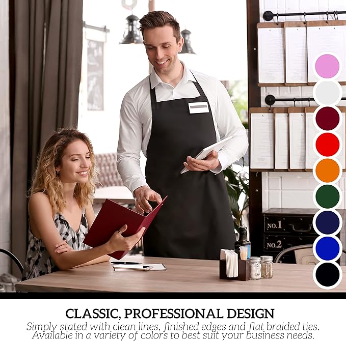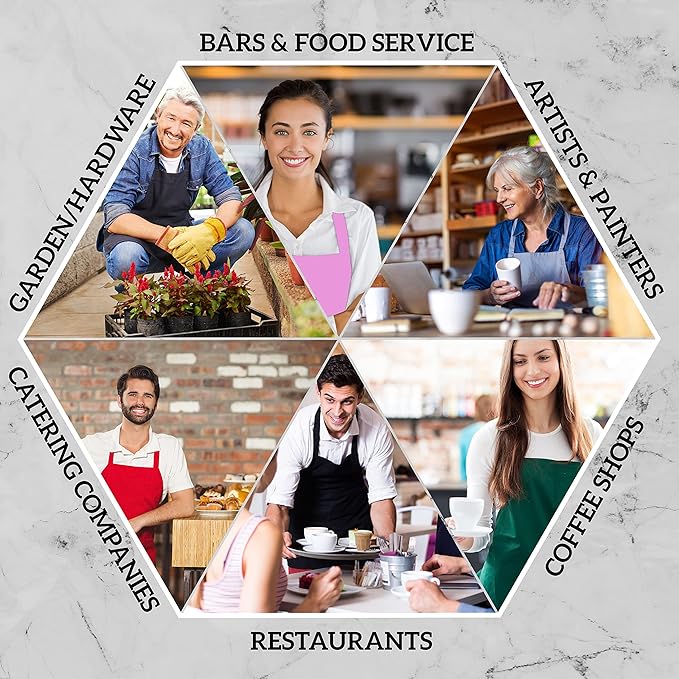 - Uniform Style, Custom Look – Available in multiple colors, these aprons bulk are perfect for creating a clean, coordinated look across your team. Whether you're outfitting a restaurant, salon, or café, you can match your aprons to your brand and keep every employee looking sharp and on-theme.