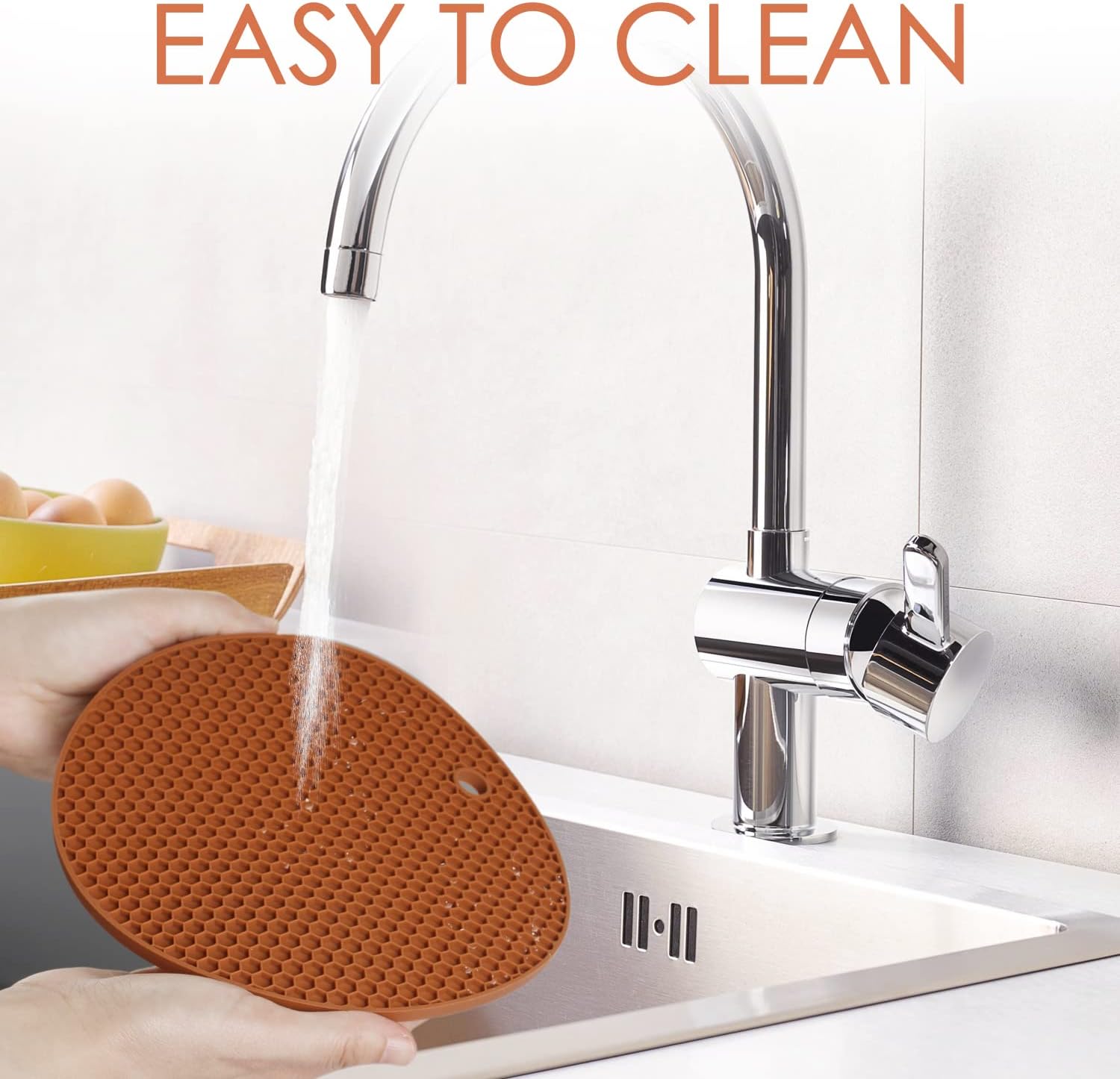- 🎯 EASY TO CLEAN & 2 SIZES- Silicone mats for the kitchen counter are easy to clean with water or in a dishwasher, cleaning with a brush if needed. Waterproof and naturally non-stick, regular silicone trivet size is 6.9" x 6.9", extra-large trivet size is 8.7" x 8.7", suitable for most bowls and plates.