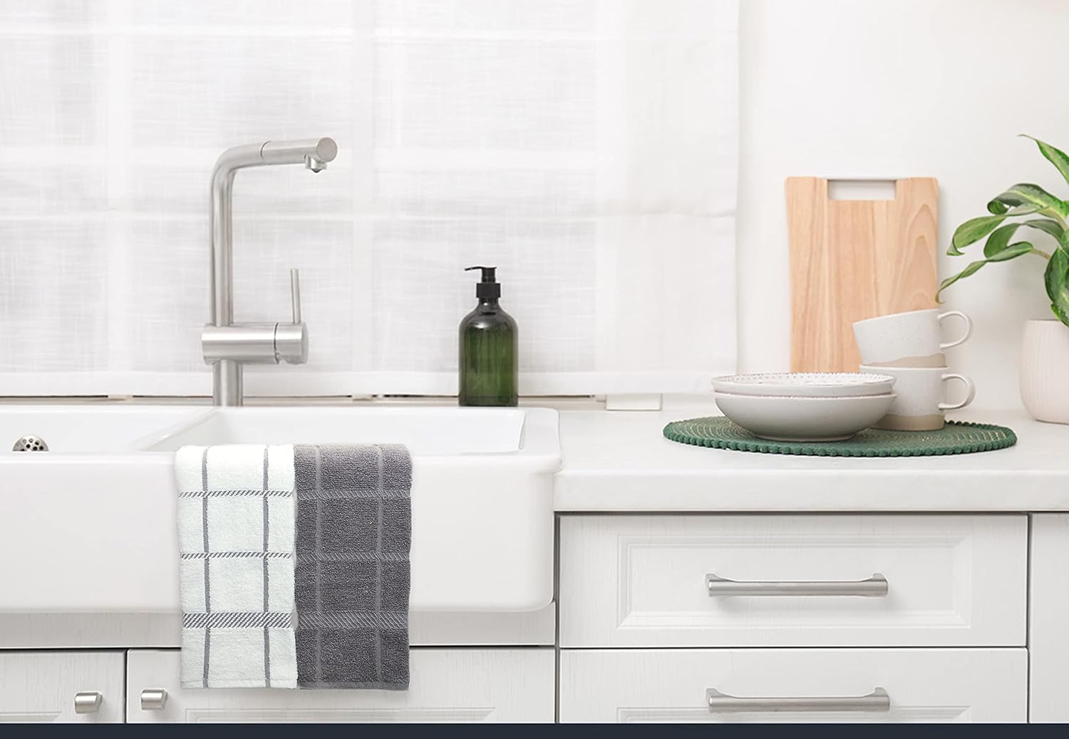 100% Cotton Terry Dish Towels, 4 Pack 16 x26 Inches, Super Soft and Absorbent Kitchen Towels, Perfect for Kitchen Cleaning and Dish Washing | Light Gray