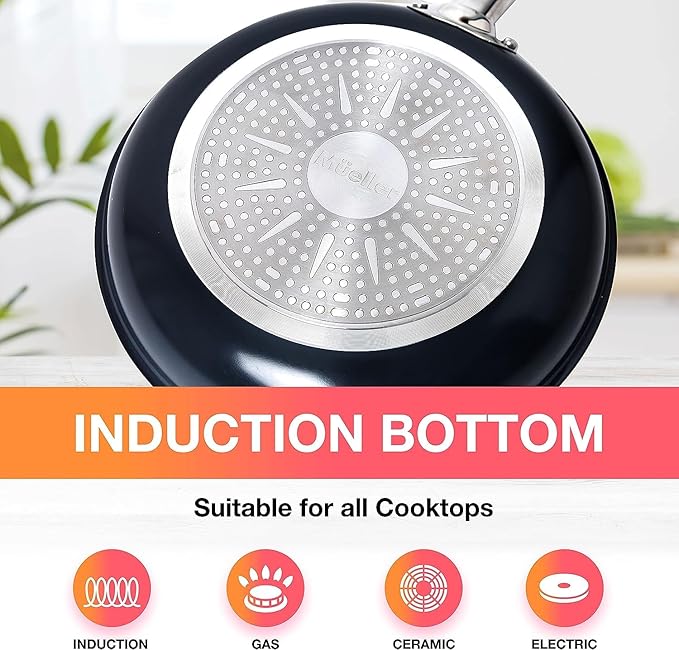 Mueller UltraClad Sapphire Pots and Pans Set Nonstick, 14 Piece Induction Cookware Sets, Aluminum Body, Includes Non Stick Deep Frying Pan, Sauce Pans for Cooking, Dutch Oven and More