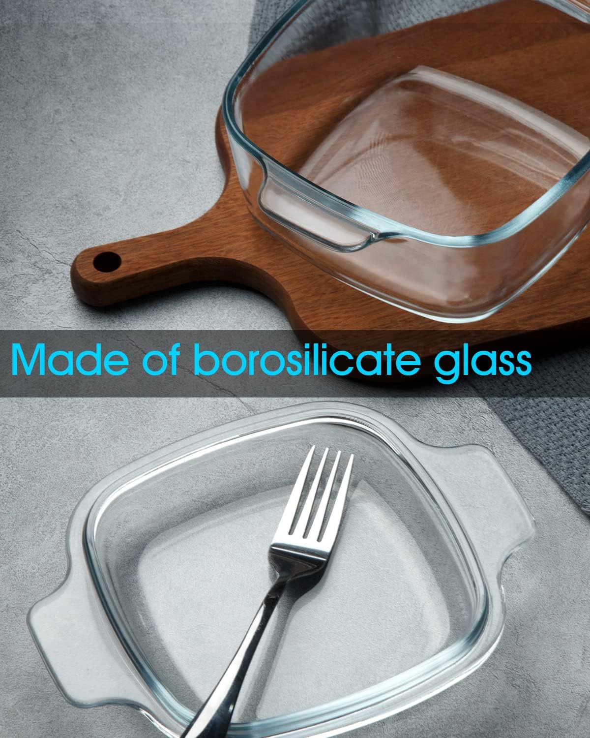 NUTRIUPS 1.5L Glass Casserole Dish with Lid Square Casserole Dish Glass Oven Bakeware Microwave Safe Dish with Lid