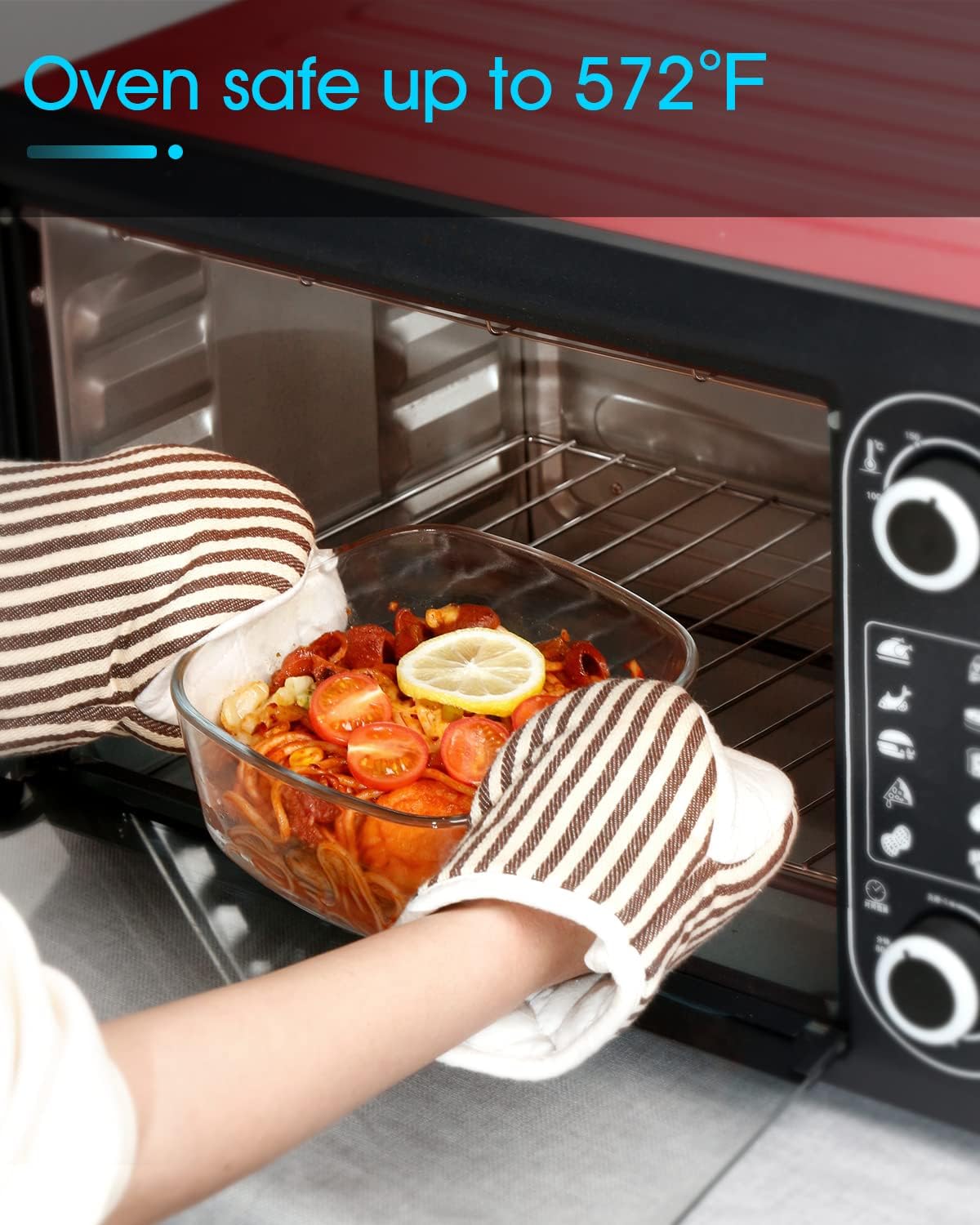 - TENDER, JUICY AND HEALTHY: The glass lid is a big plus for keeping the food moist while baking and microwaving, and rescue you from messy aluminum foil or disposable wraps. Your food will come out tender, juicy and healthy. Even sauce comes out creamy, not dry. It's great for veggies, manicotti, bread puddings, layered cake and pot roast