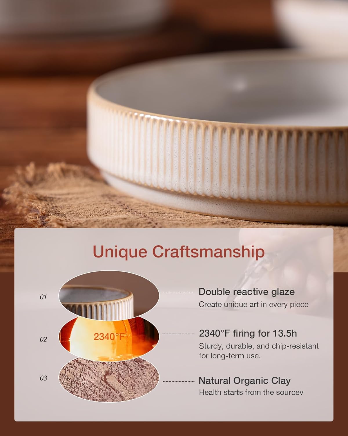 - WITHSTAND THE TEST OF TIME: Made from organic and natural clay, these cereal bowls are fired at 2340 °F for 13.5 hours, resulting in a sturdy, long-lasting, and chip-resistant product designed for long-term use