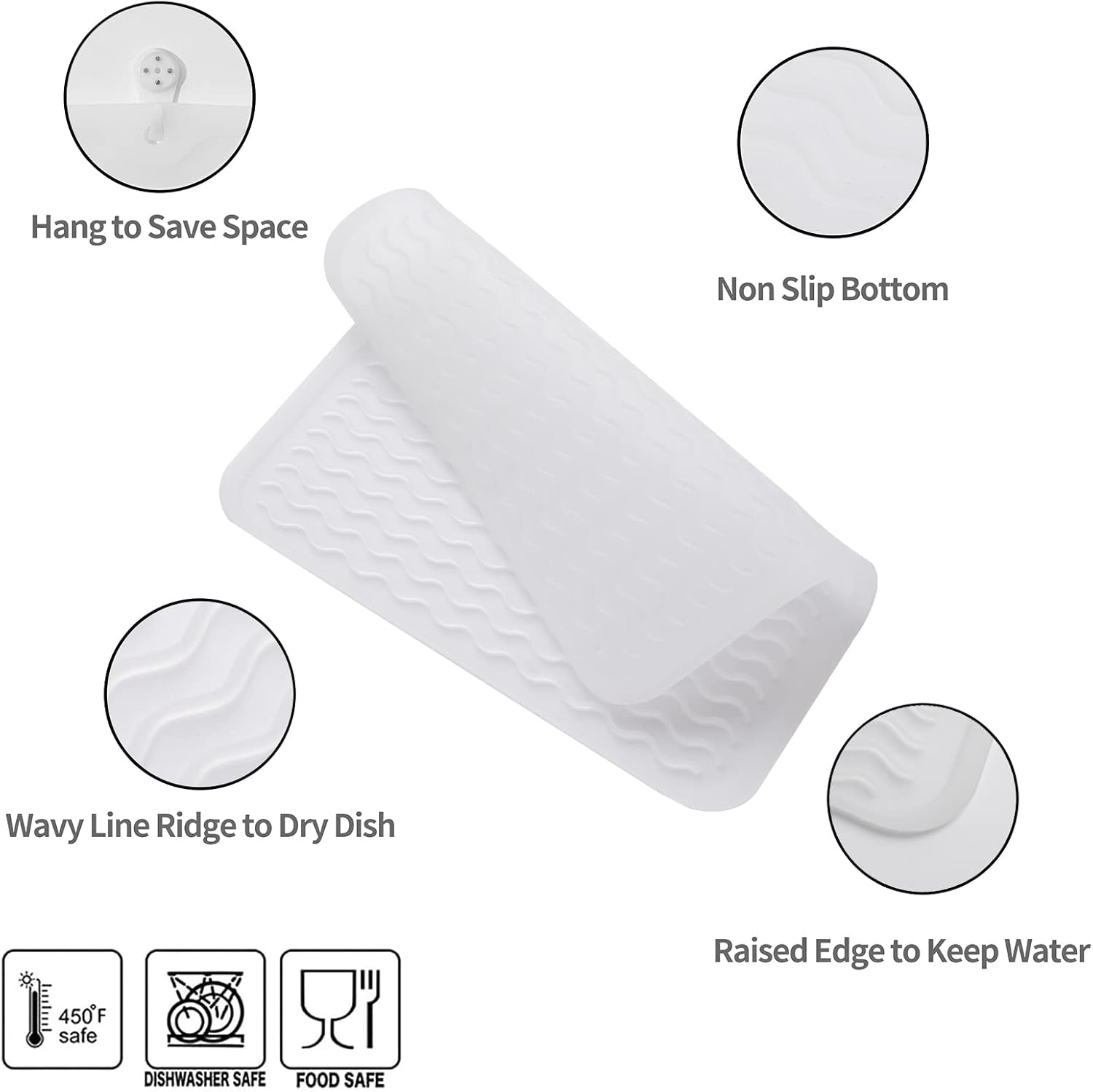 Silicone Dish Drying Mat for Multiple Usage,Easy clean,Eco-friendly,Heat-resistant Silicone Mat for Kitchen Counter or Sink,Refrigerator or Drawer liner Translucent M 12 inches x 12 inches