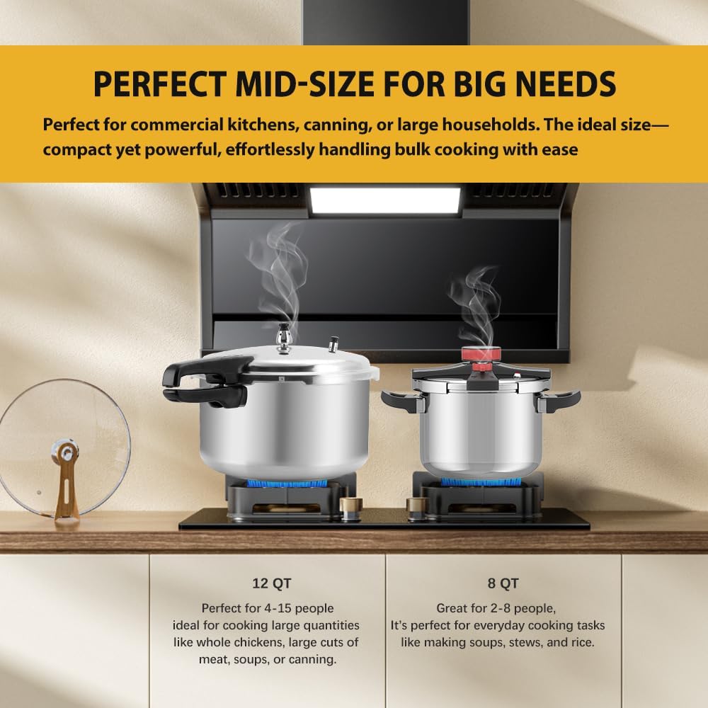 - [12 QT Pressure Cooker] All the delicious dishes can be cooked at once. BreeRainz 12Qt pressure canners for canning provides enough space for all your cooking purposes,such as making delicious soups, stews or canning,etc