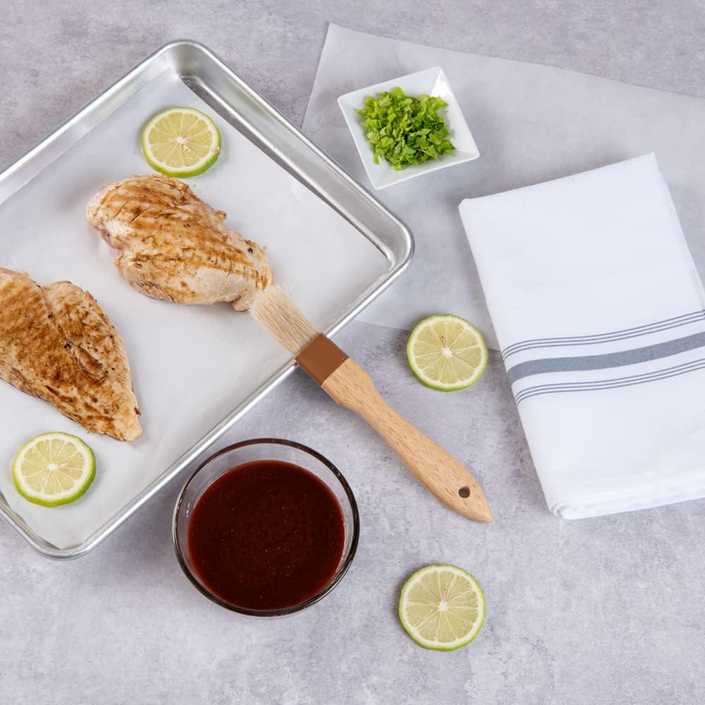 - HANDY TO USE: Made from rubber wood, the lacquered handle of this marinating brush has a non-slip, splinterless surface to let you coat pastries effortlessly. Withstands heat without burning fingers!