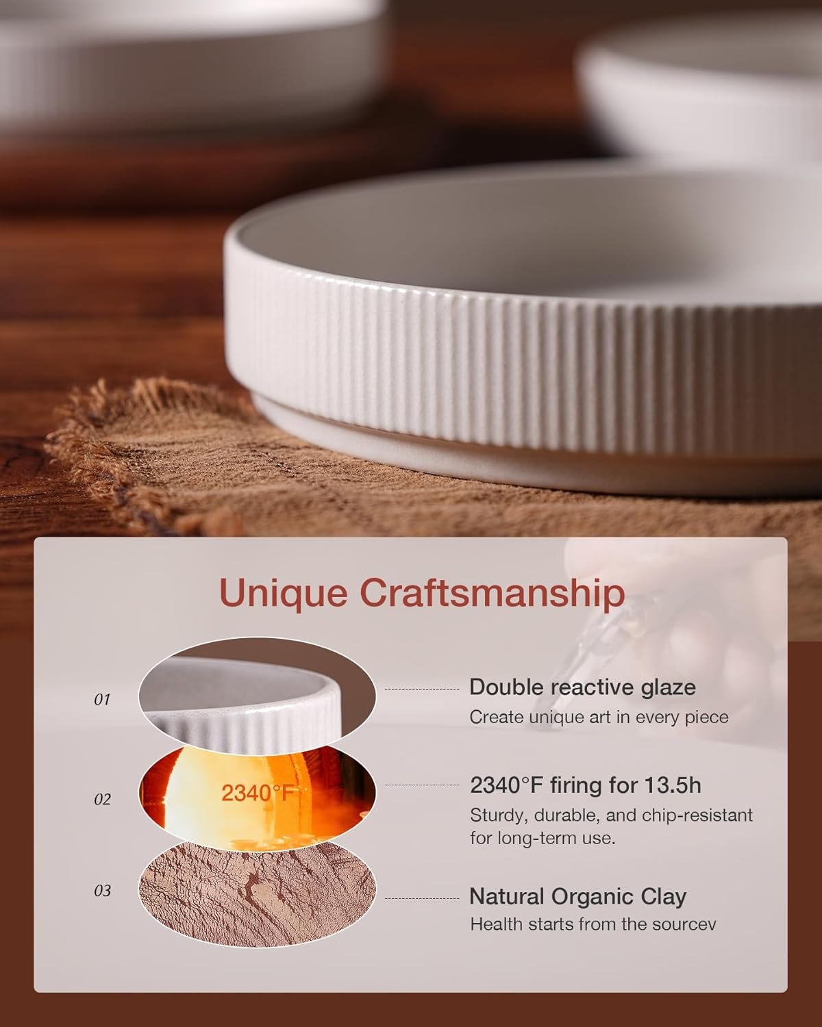 - WITHSTAND THE TEST OF TIME: Made from organic and natural clay, these cereal bowls are fired at 2340 °F for 13.5 hours, resulting in a sturdy, long-lasting, and chip-resistant product designed for long-term use