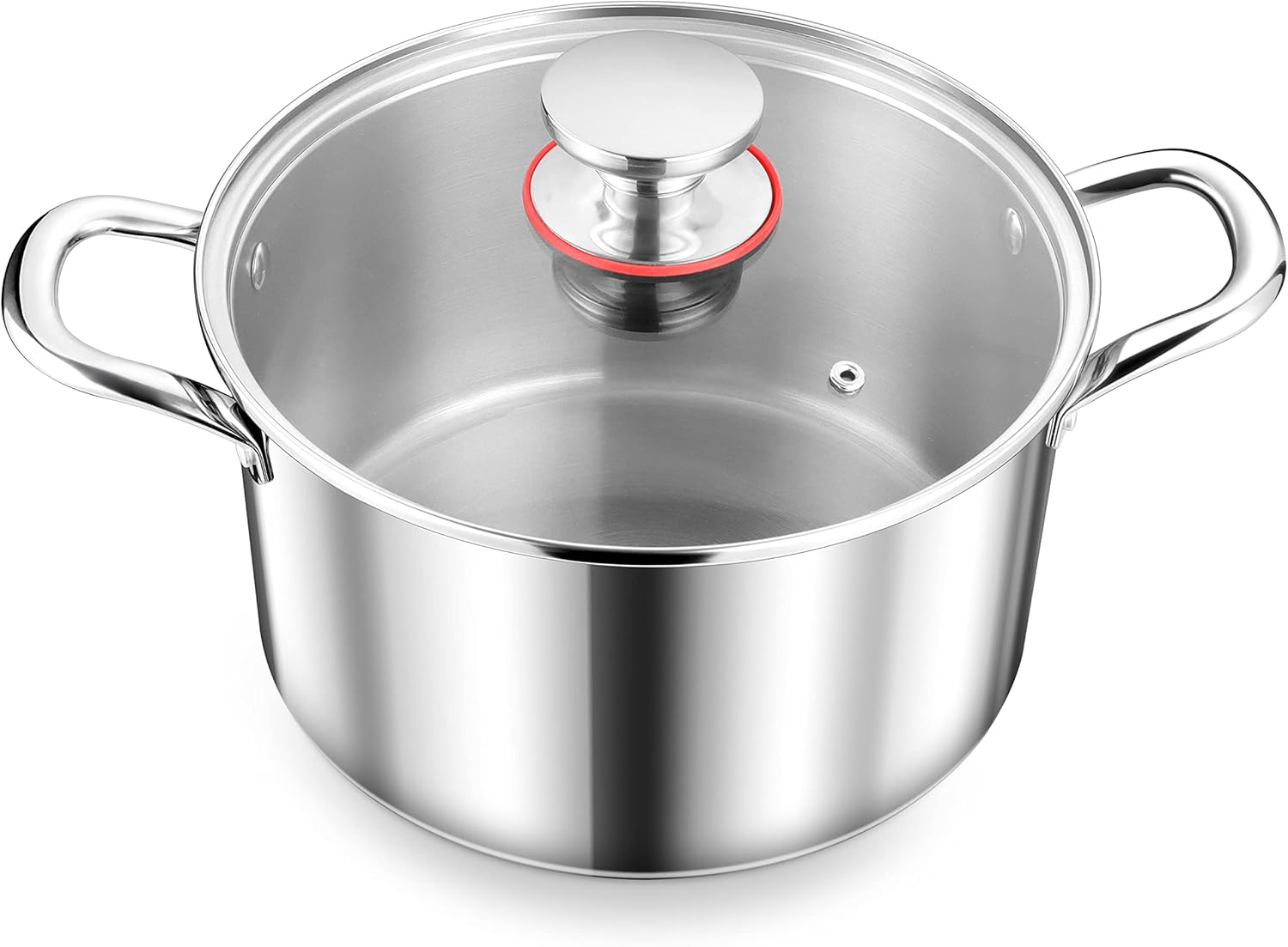 - Stockpot with lid, a sealed and see-through glass lid goes with the pot, easy to monitor your cooking process, the steam vent releases superfluous vapor, prevent overflowing and preserve food’s taste and nutrients