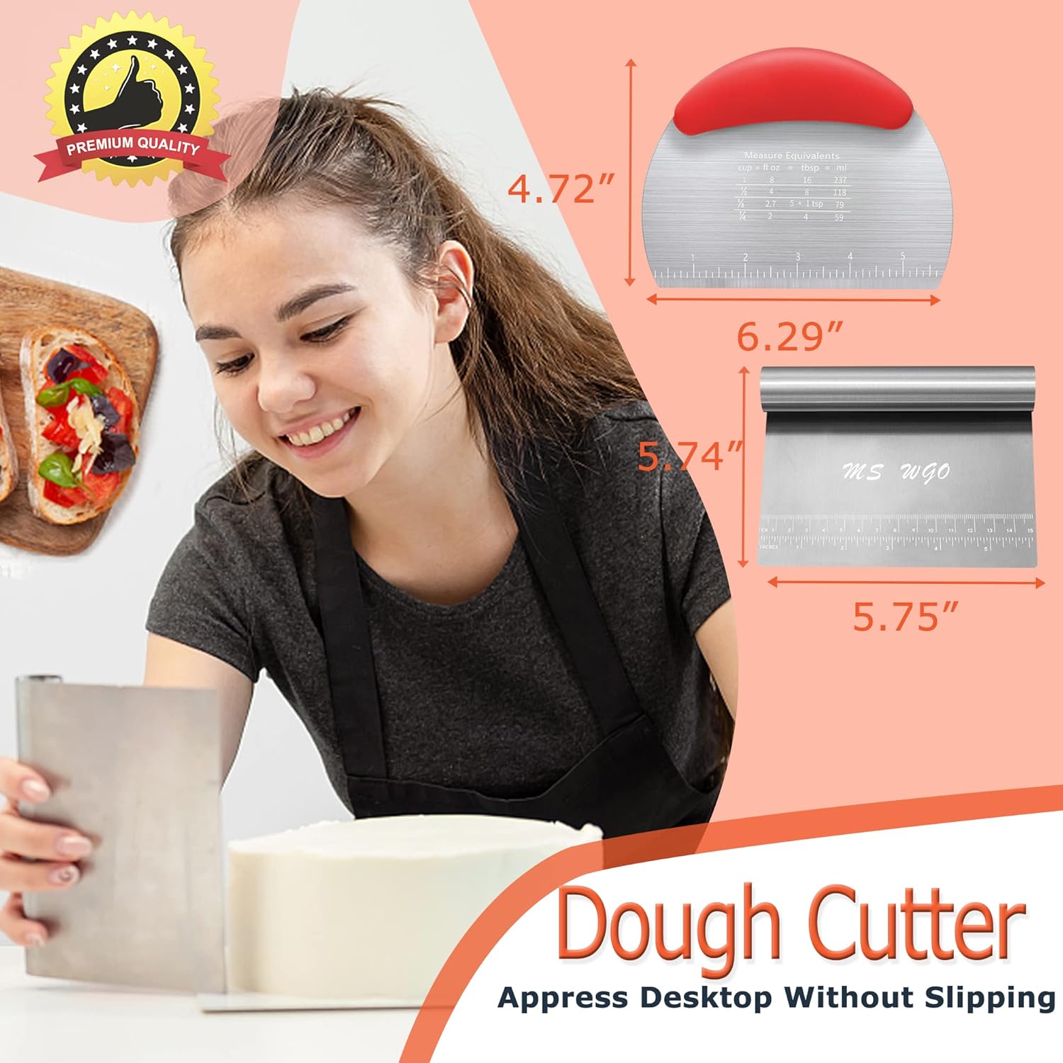 - Grasp your stomach accurately - the Dough Cutter can cut all kinds of vegetables at will, and the stainless steel Bench Scrape will not break easily. Moreover, the silicone handle of Pastry cutter is anti-slip and easy to grip, and the edges and corners of Dough Scraper are smooth.