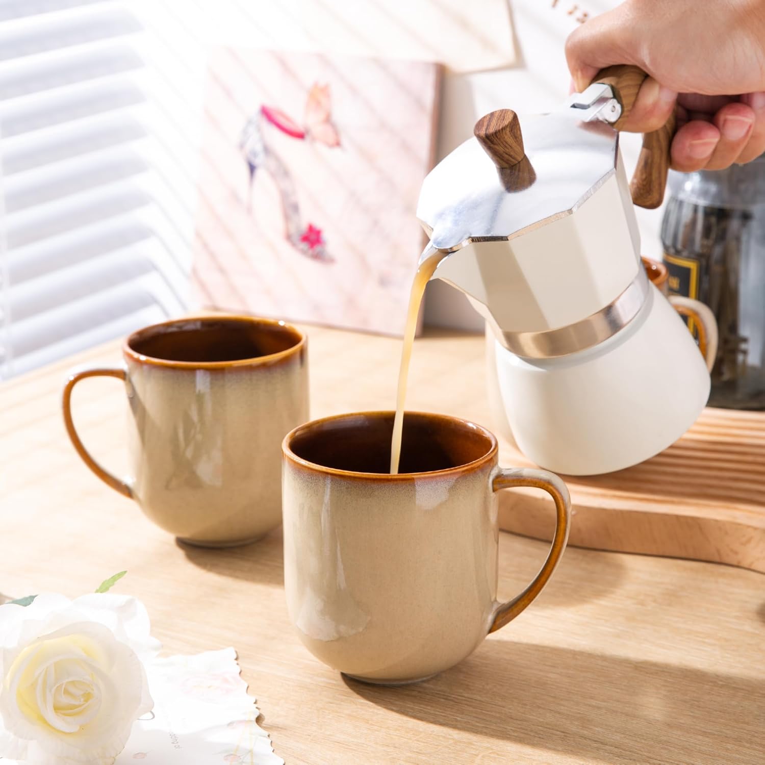 LERATIO 12OZ Ceramic Coffee Mugs Set of 6, Large Porcelain Coffee Cups With Large Handle For Latte,Cappuccino,Milk,Cocoa,|Dishwasher&Microwave Safe Mug Sets,Ideal for Man,Woman,Dad, Mom-Kahki