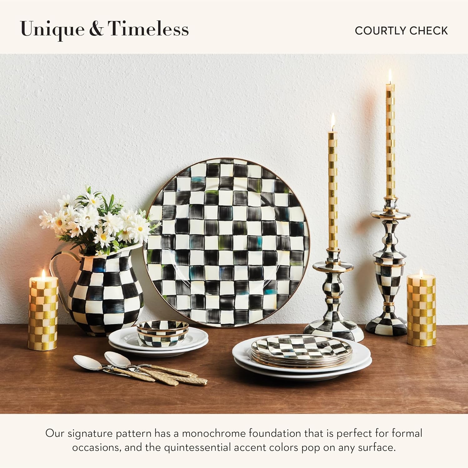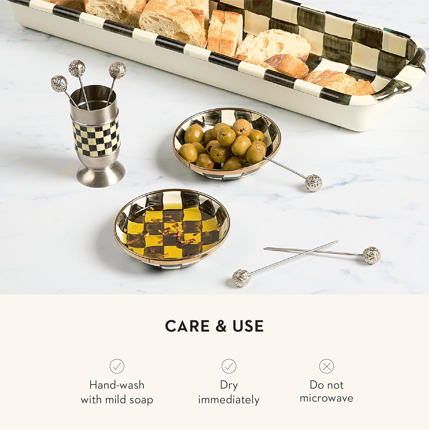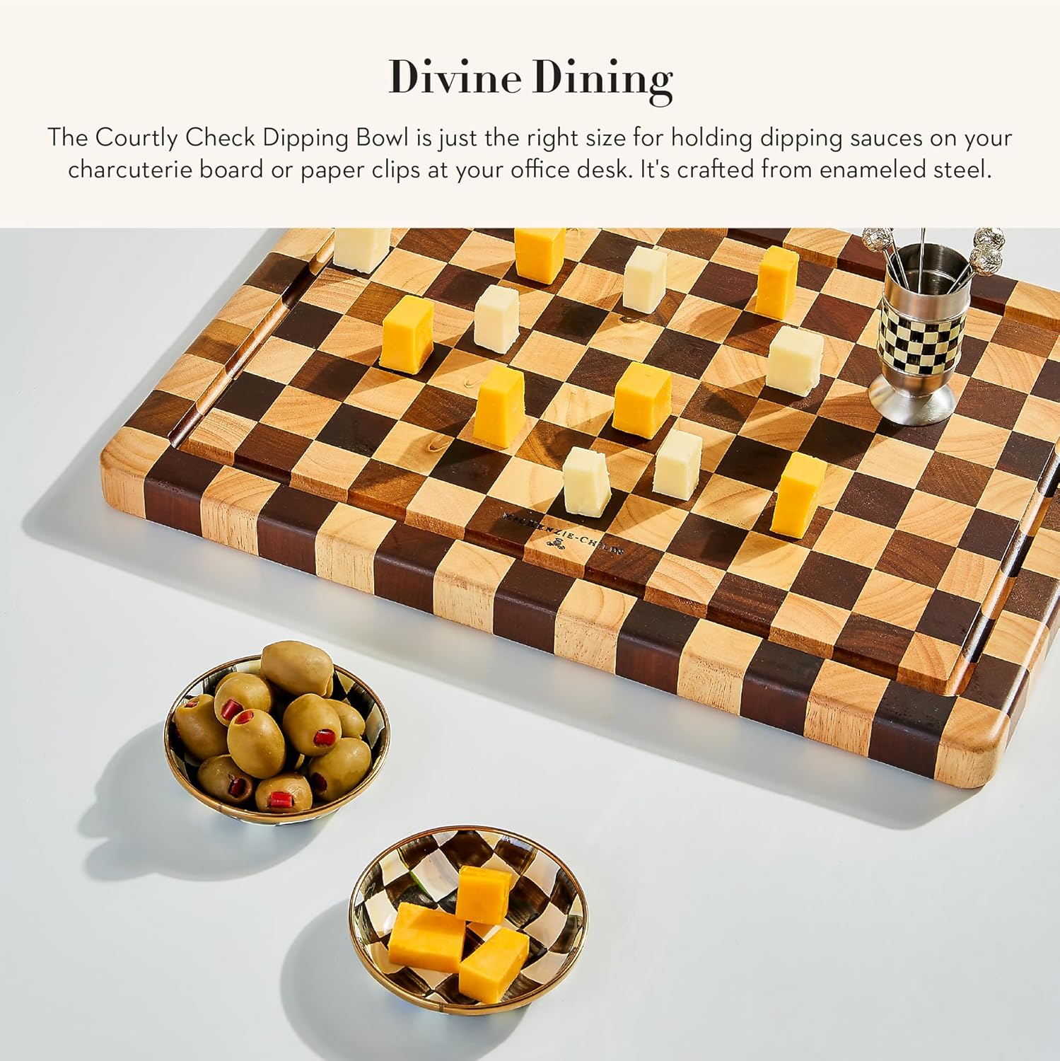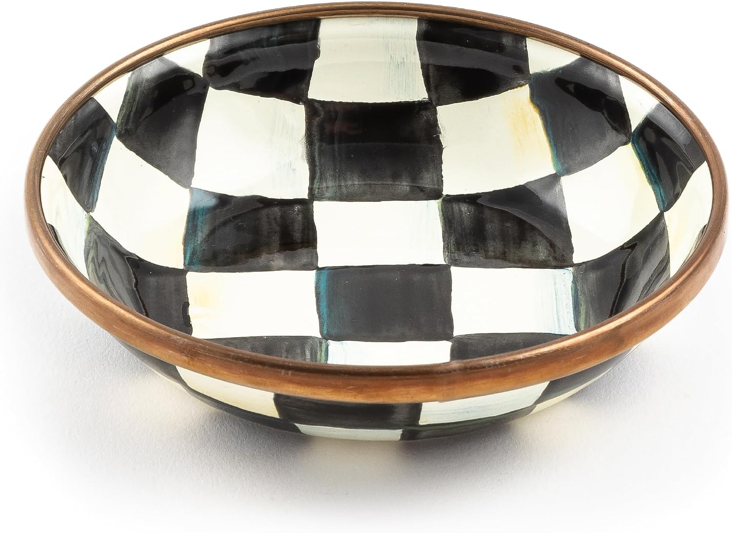 MACKENZIE-CHILDS Enamel Dipping Bowl, Small Serving Bowl for Entertaining, Black-and-White Courtly Check
