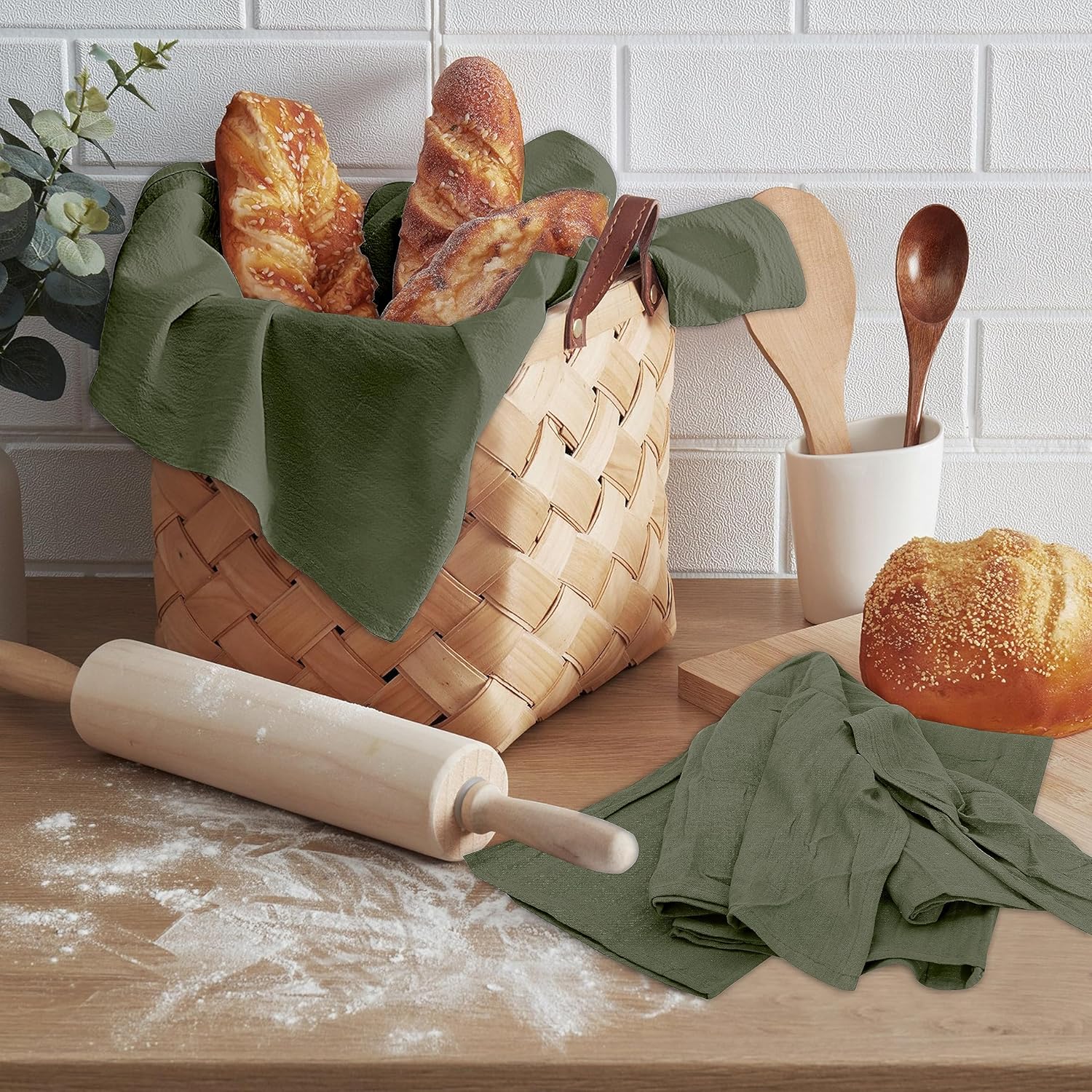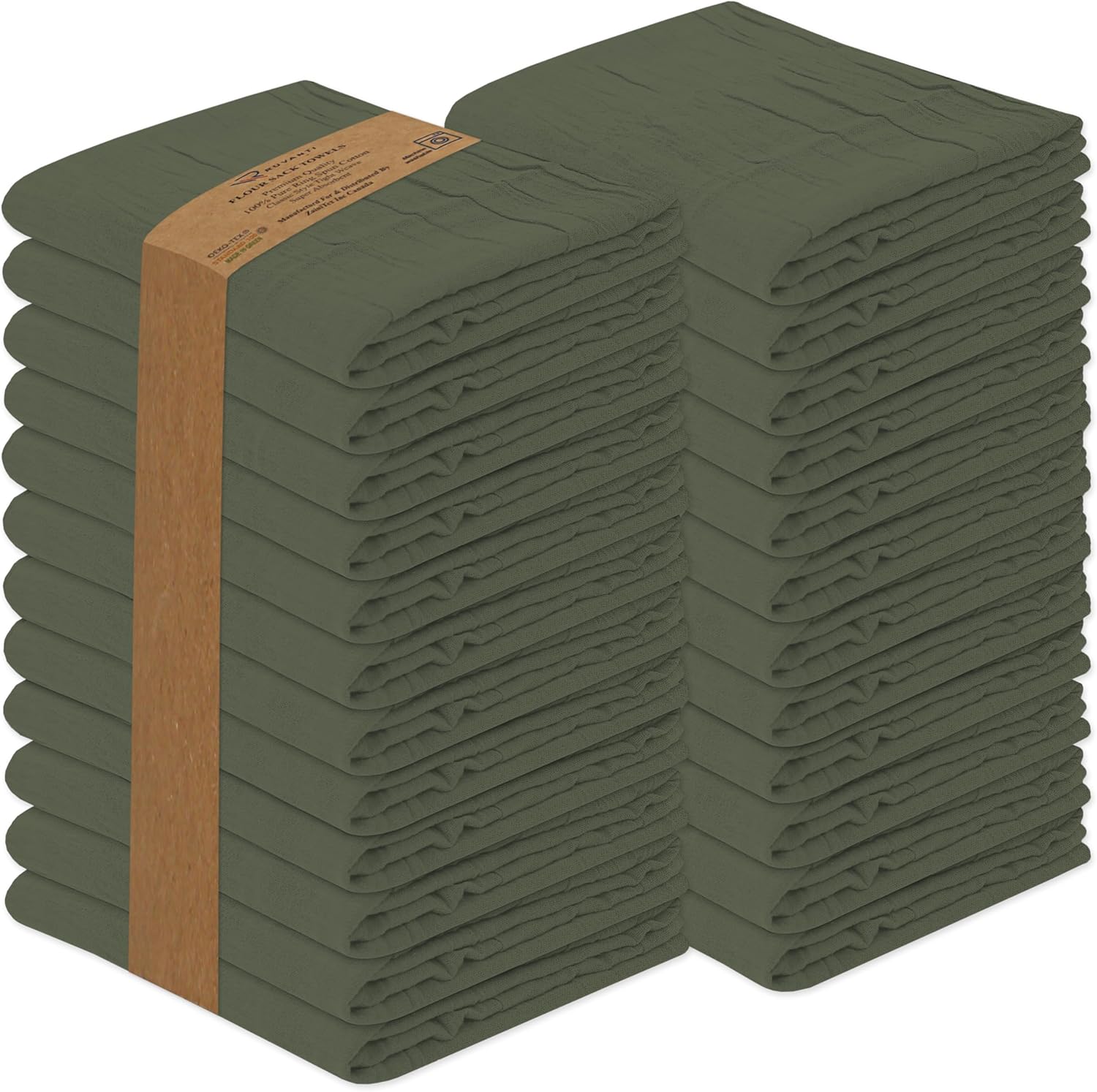 RUVANTI Flour Sack Towels 24 Pack 28x28 Inch, 100% Cotton Tea Towel, Reusable, Machine Washable, Absorbent BarTowels - Dish Cloth Perfect for Drying Dishes & Cleaning - Martini Olive