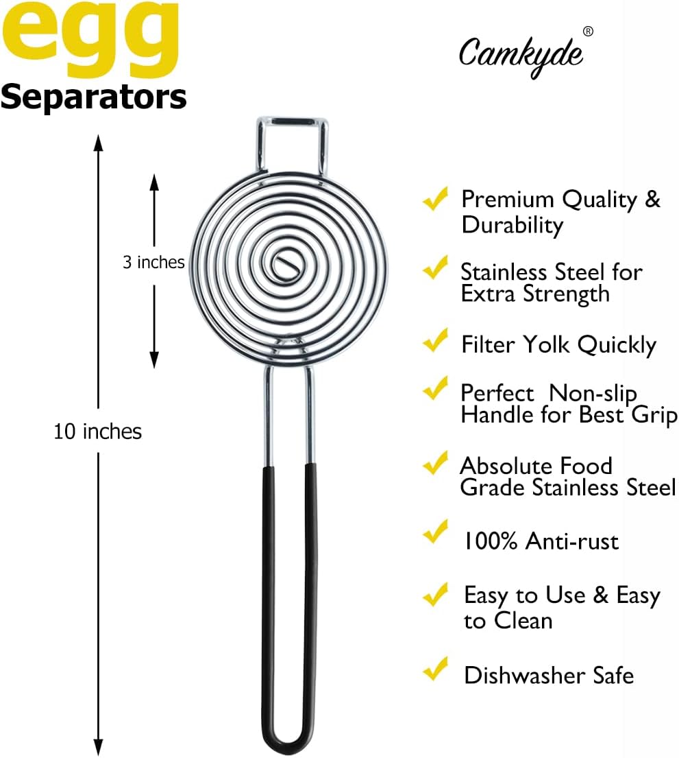 - MORE SAFE AND EFFICIENT. If you have used other egg extractor, then you must know that egg whites are difficult to filter and you need to shake the separator for a long time. But for the CAMKYDE Egg Yolk Separator, you no longer need to shake the separator, and the egg yolk is filtered instantly. Heavy duty and durability egg yolk white separator give you quality use for years to come.