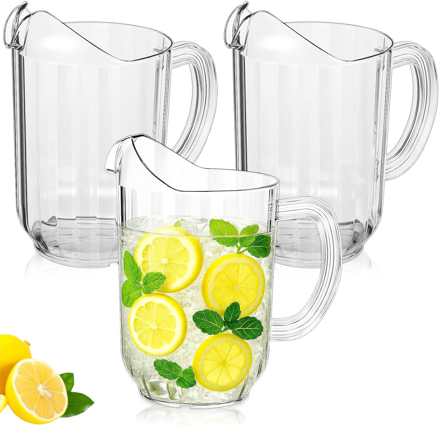 Tessco for you Plastic Pitchers 60 Ounce Clear Restaurant Jug Large Water Pitcher Carafe Serve Milk Tea Juice Drink for Parties Container Dispenser Beer Jar(3 Pcs)