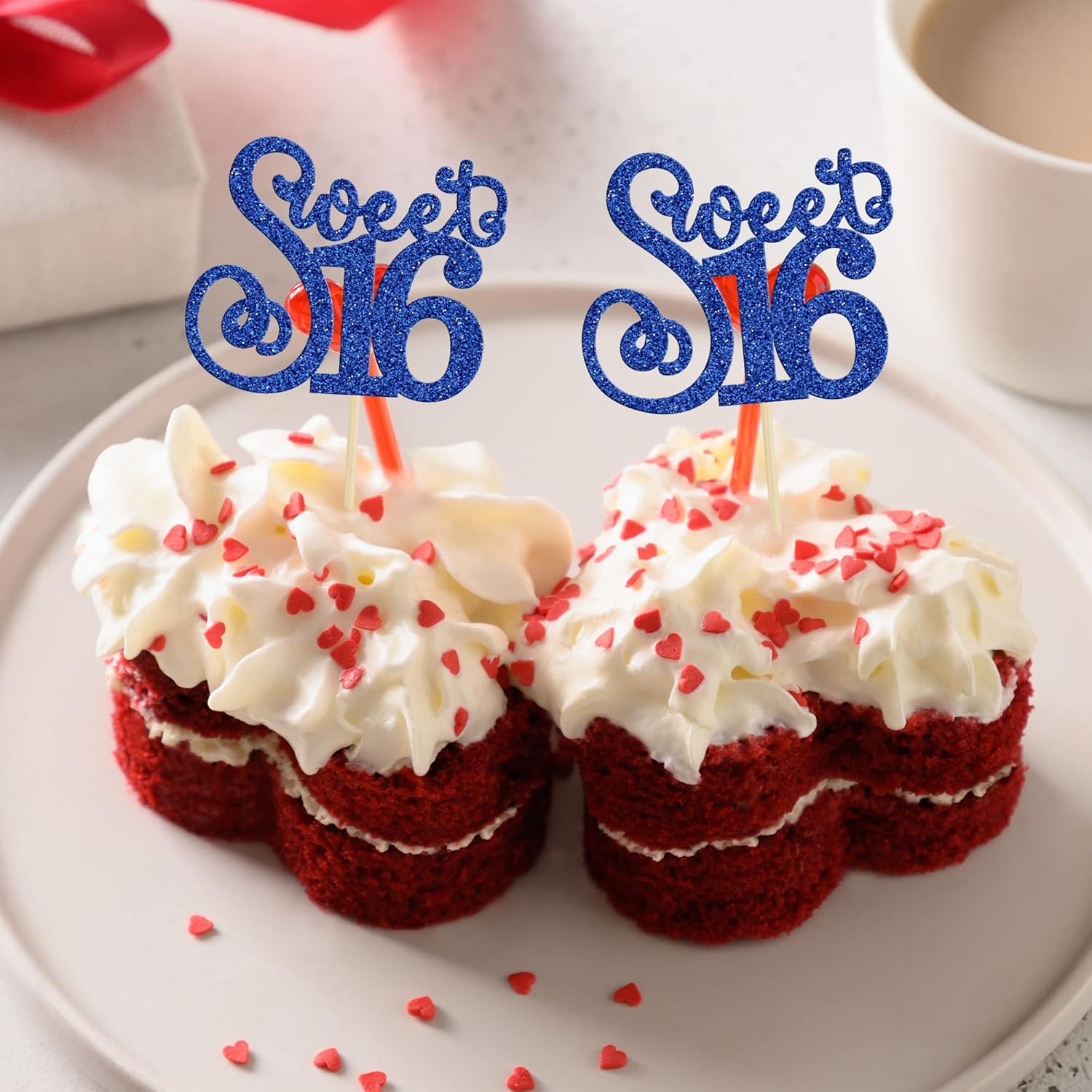 - 💕💕These Sweet 16 Cupcake Toppers are so cute and good for 16th birthday theme party, 16th anniversary theme party, 16 fabulous theme party cupcake decorations. They can make your cupcake more attractive and bring the fun to your party. You can also apply them for ice cream, fruits, cookies and other desserts.