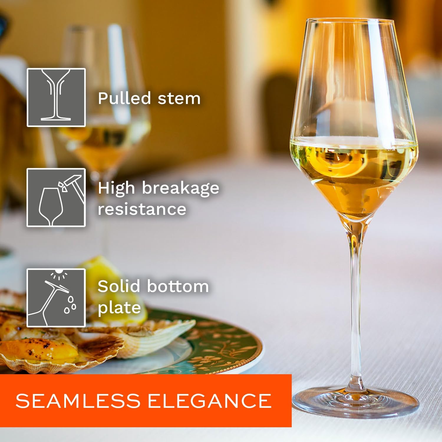 Stölzle Lausitz White Wine Glasses Set of 4 (QUATROPHIL). Dishwasher Safe, Crystal Luxury Wine Glasses (14.25 floz). Genuine Stölzle Wine Glass Set