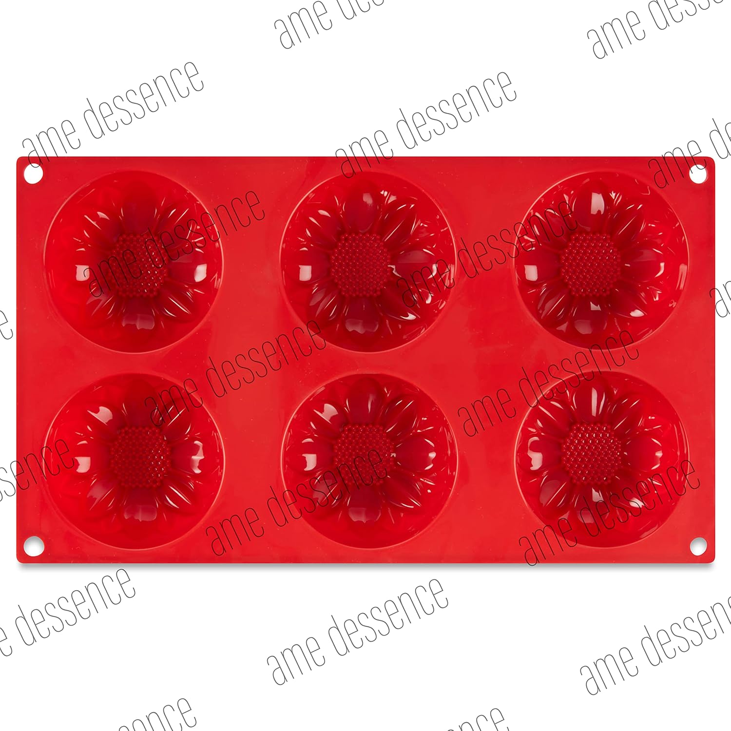 AME D'ESSENCE Sunflower Shaped Silicone Baking Mold - Non-Stick, Flexible, 6-Cup Capacity (3.89 oz), Reusable and Food-Grade - Perfect for Cupcakes, Muffins, and More!