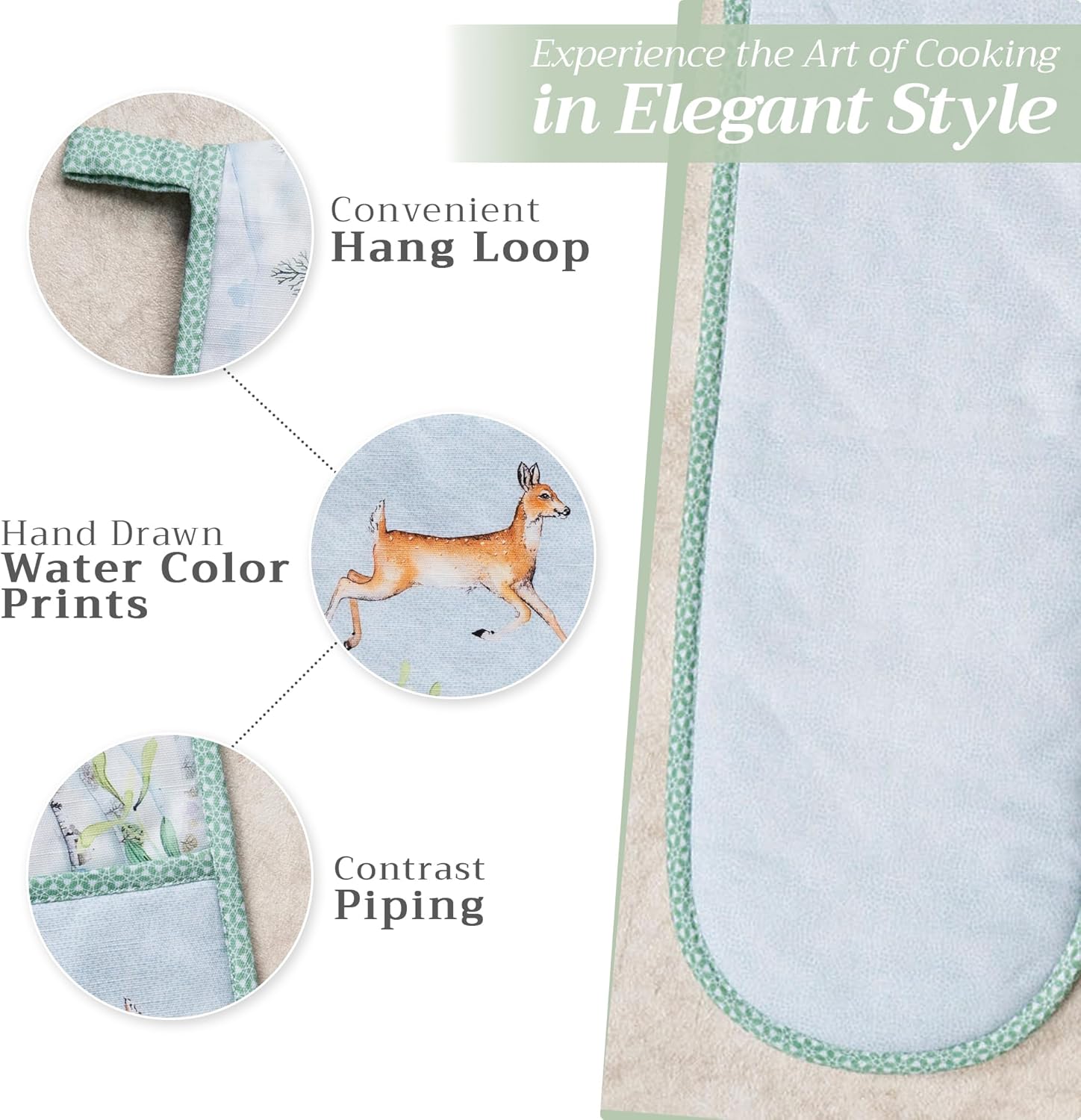 - 100% Quilted cotton: Crafted from premium quilted cotton for superior heat resistance and durability. This double oven mitt offers a soft, flexible grip and protects your hands during baking, roasting, or grilling