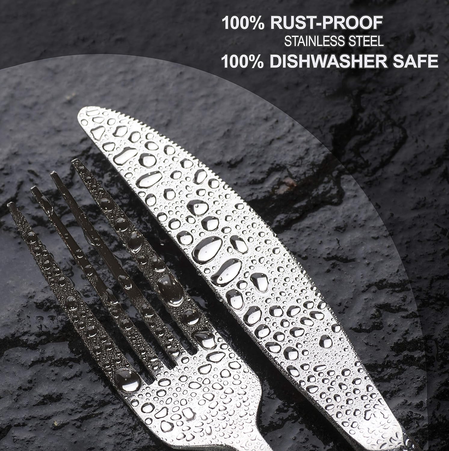 - premium quality material — our flatware set is meticulously crafted from high-grade stainless steel, ensuring both durability and elegance. enjoy a long-lasting utensil collection designed to stand the test of time and grace your table for years to co