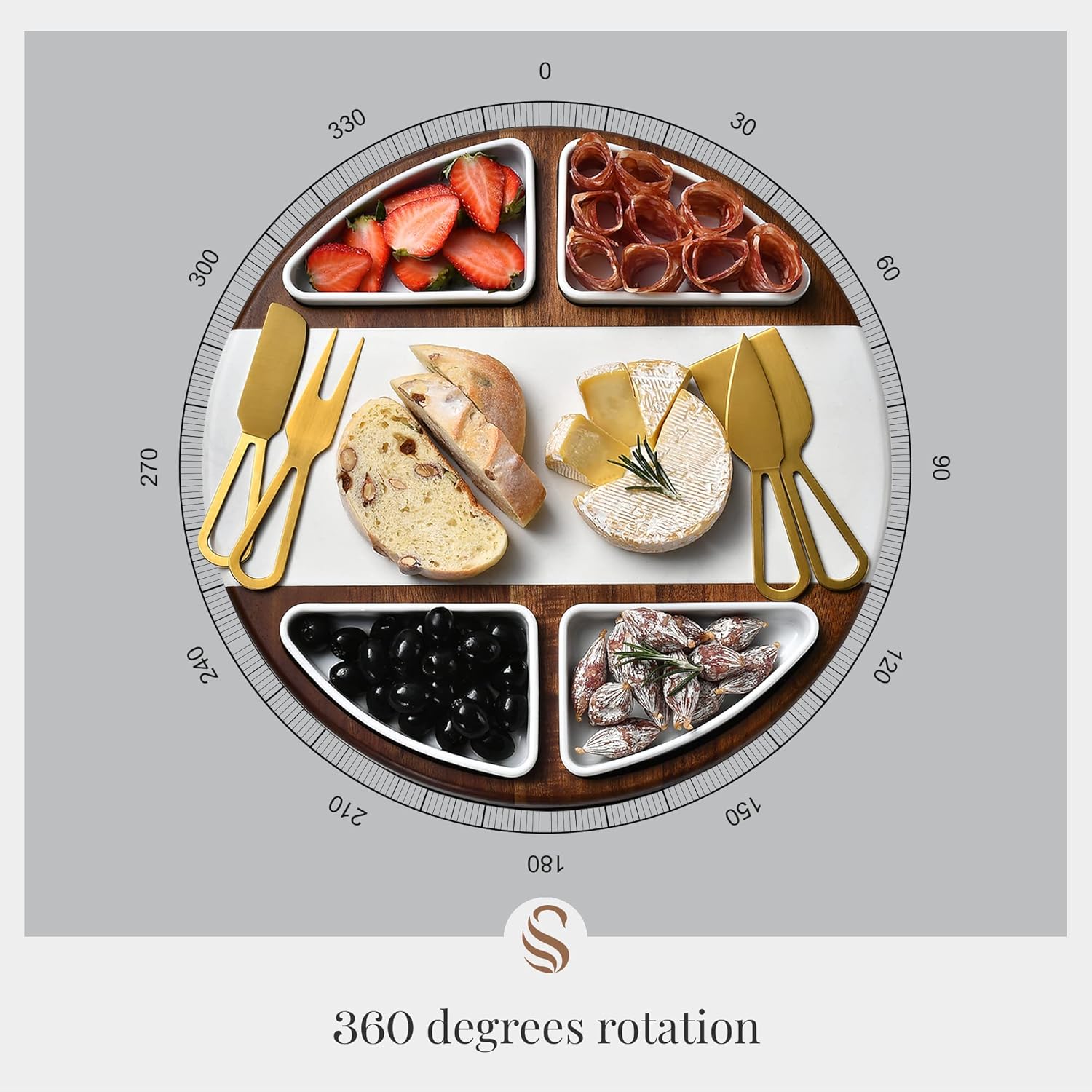 - Elevate Your Entertaining Experience: This Shanik Lazy Susan charcuterie board, crafted from premium Acacia wood, acts as the perfect centerpiece for any gathering, providing an elegant and functional platform to serve an array of cheeses, meats, and more. Immerse friends and family in a world of flavors with easy access and effortless spin, making hosting easy and luxurious.