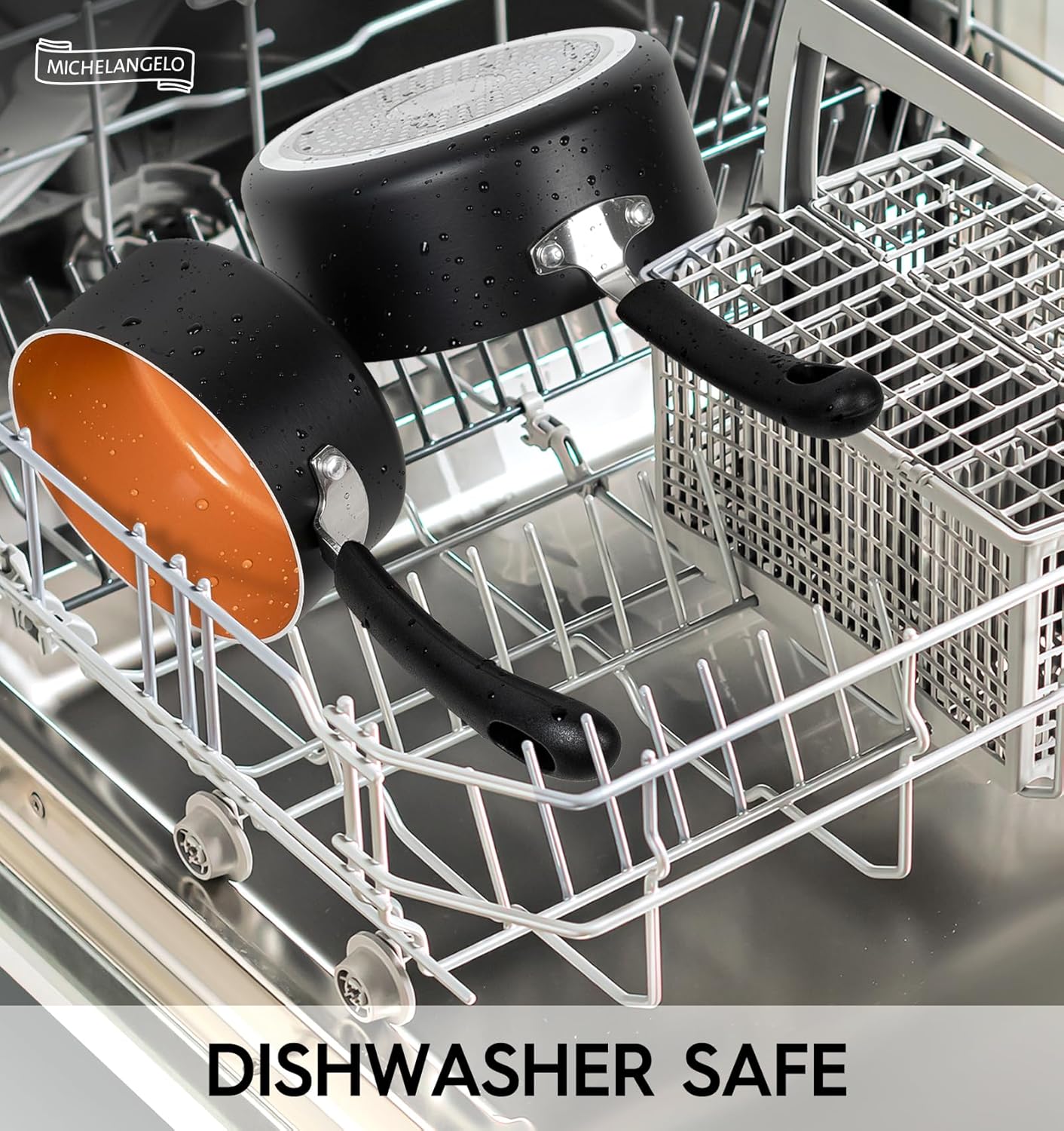 - [FAST & EVEN HEATING] - The cooking pots in our sauce pan set have durable aluminum alloy bases that greatly enhance heating performance. Suitable for all stovetops. Dishwasher Safe