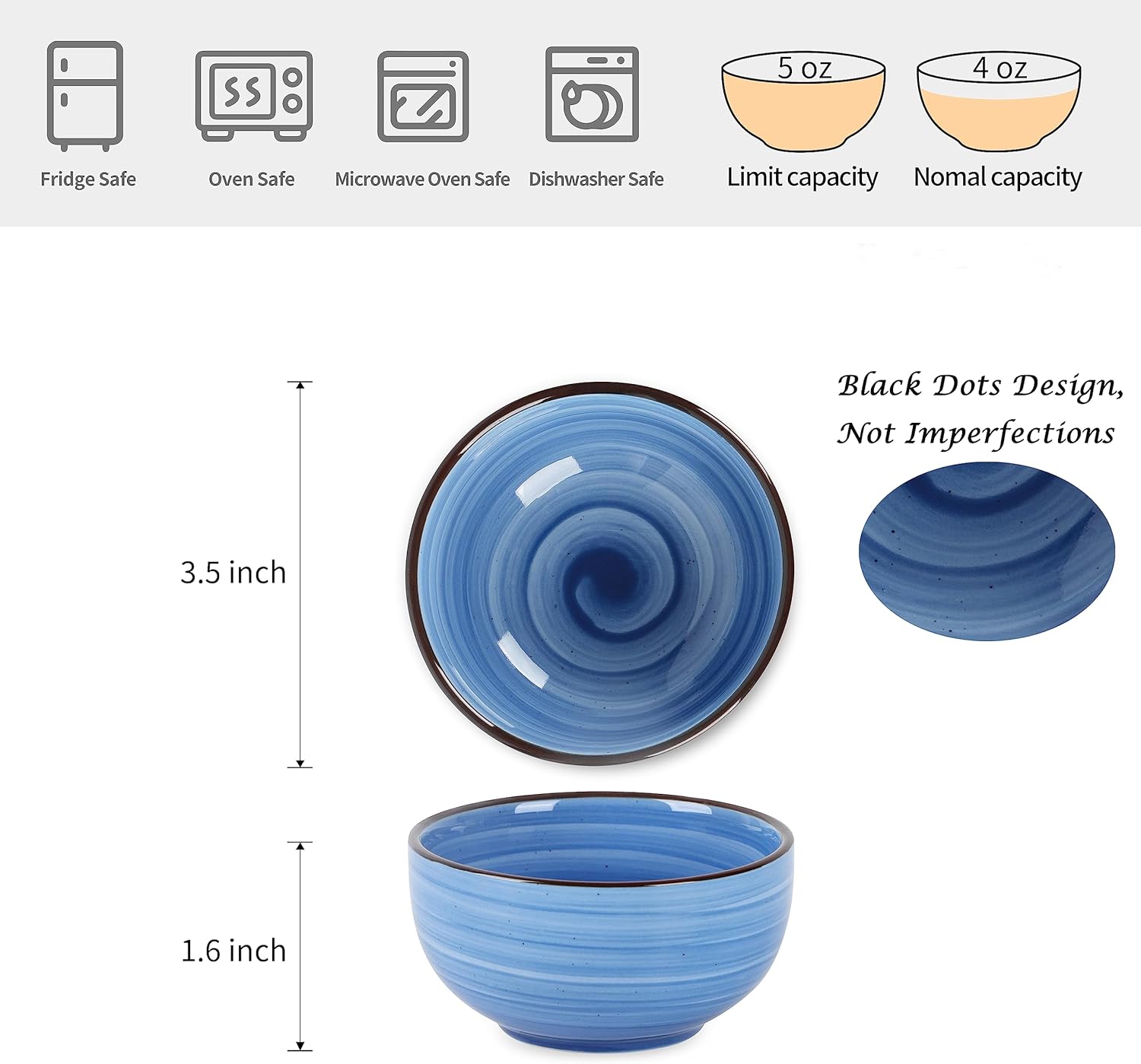 Selamica Ceramic Mini Bowls, 4 OZ Dipping Bowls, 3.5 Inch Gradient Blue Set of 6, Microwave & Dishwasher Safe