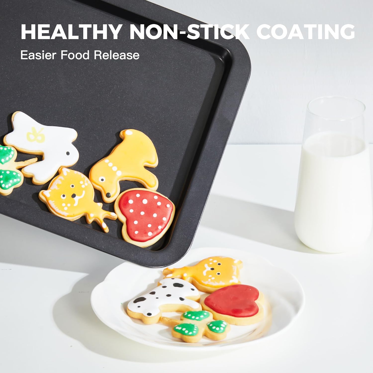 - SUPERIOR NONSTICK TECHNOLOGY - The baking pans set nonstick with high-quality Whitford non-stick coating and inner and outer protective layers to ensure the perfect release of food. easy to clean, and dishwasher-safe