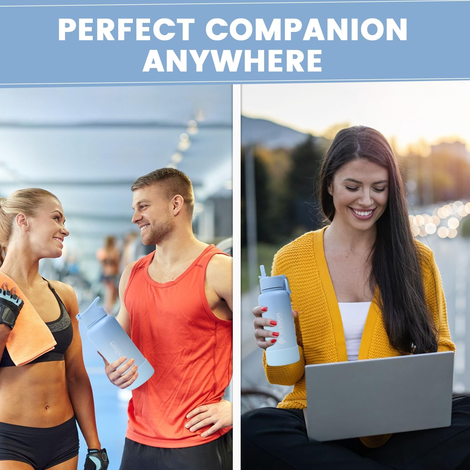- ✅ SILICON BOOT/SLEEVE- Lexlion 32 oz stainless steel water bottle comes with an advanced shock-absorbing silicone material that helps to protect against dents, dings, scratches, and all the imperfections of your 32 oz insulated water bottle. You are protected against an inevitable drop in your water infuser bottle. This will extend the life of your flask. The infuser water bottle is BPA-free and made of soft and highest-quality material.