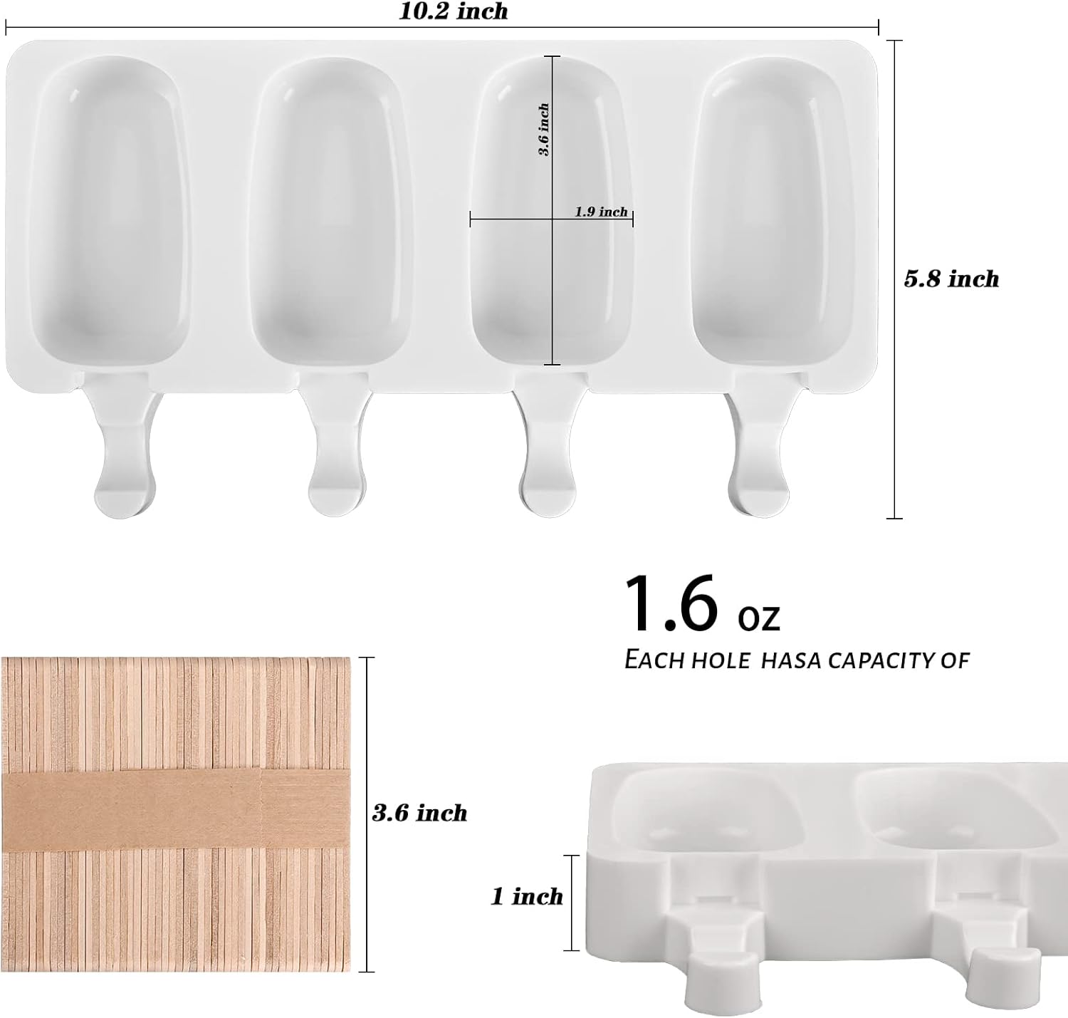 Sakolla 3 Pack Large Popsicle Molds 4 Cavities Cake Pop Silicone Molds Oval Ice Cream Cakesicle Molds for Homemade Ice Pop with 100 Wooden Sticks