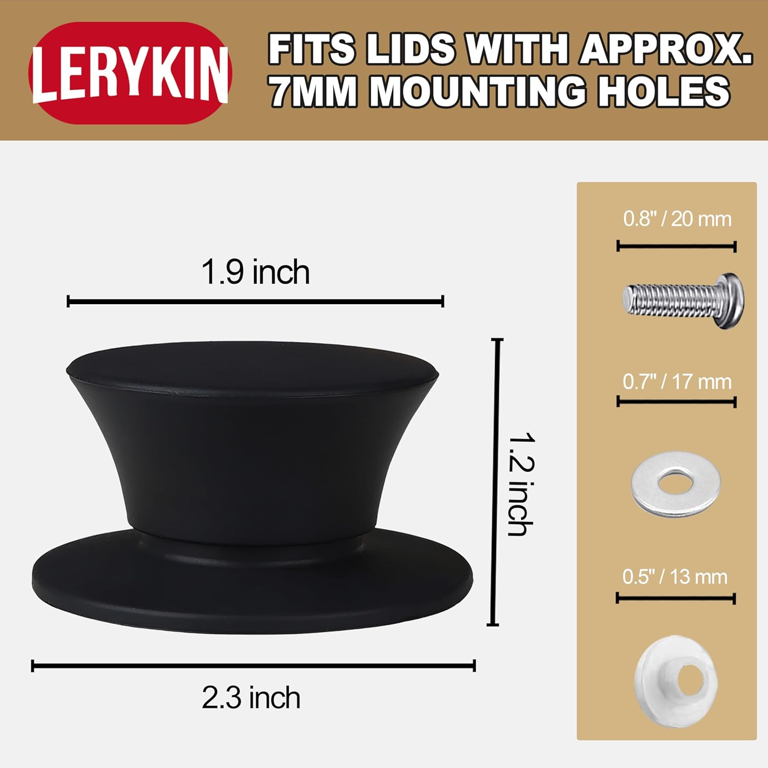 - 【 PREMIUM QUALITY SILICONE 】: Lerykin silicone pot lid knob is crafted from high-quality food-grade silicone, ensuring safety, durability, and long-lasting performance. It is designed to withstand high temperatures without deforming or cracking, providing a reliable and safe option for your kitchen.