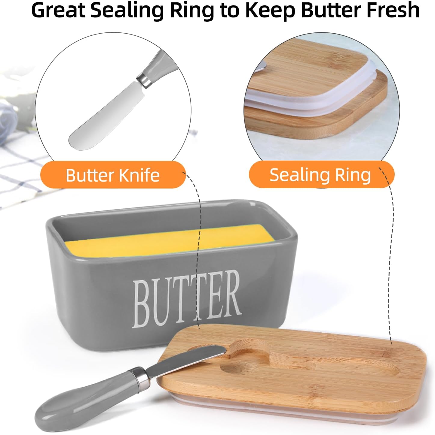 - Multifunctional Design - Built in with a stainless steel butter knife, ensure the easy spread of butter. The removable sealing ring and non-stick porcelain are made for easy cleaning. When you pick up the lid, it won't be messy and make it easier to clean