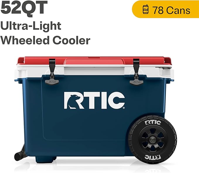 - ALL-TERRAIN WHEELED COOLER – Venture into the great outdoors with confidence, equipped with the RTIC Ultra-Light insulated cooler with wheels, equipped with puncture-resistant, all-terrain wheels to effortlessly traverse through rough terrains.