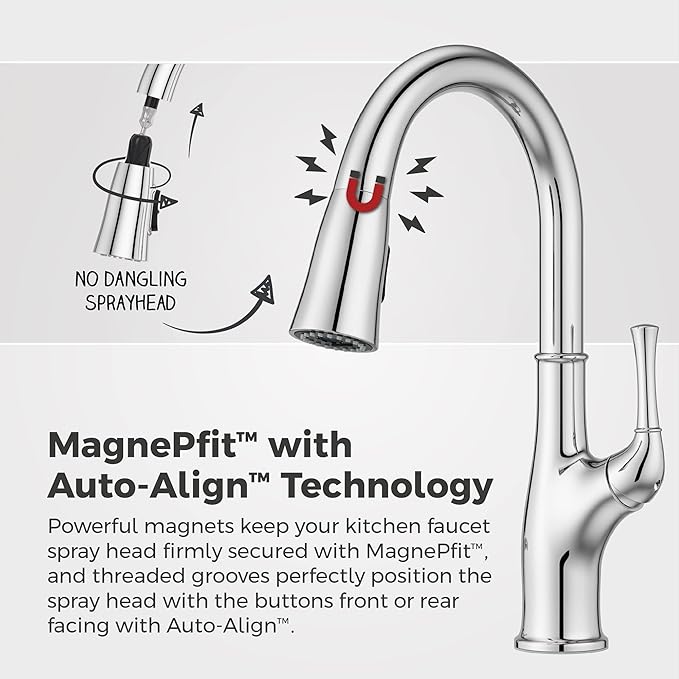 - ADVANCED SPRAY HEAD DOCKING – MagnePfit uses powerful magnetic docking to keep your spray head firmly secured; Auto-Align ensures your spray head aligns correctly all on its own